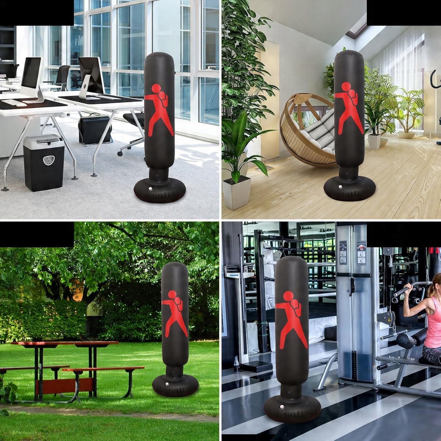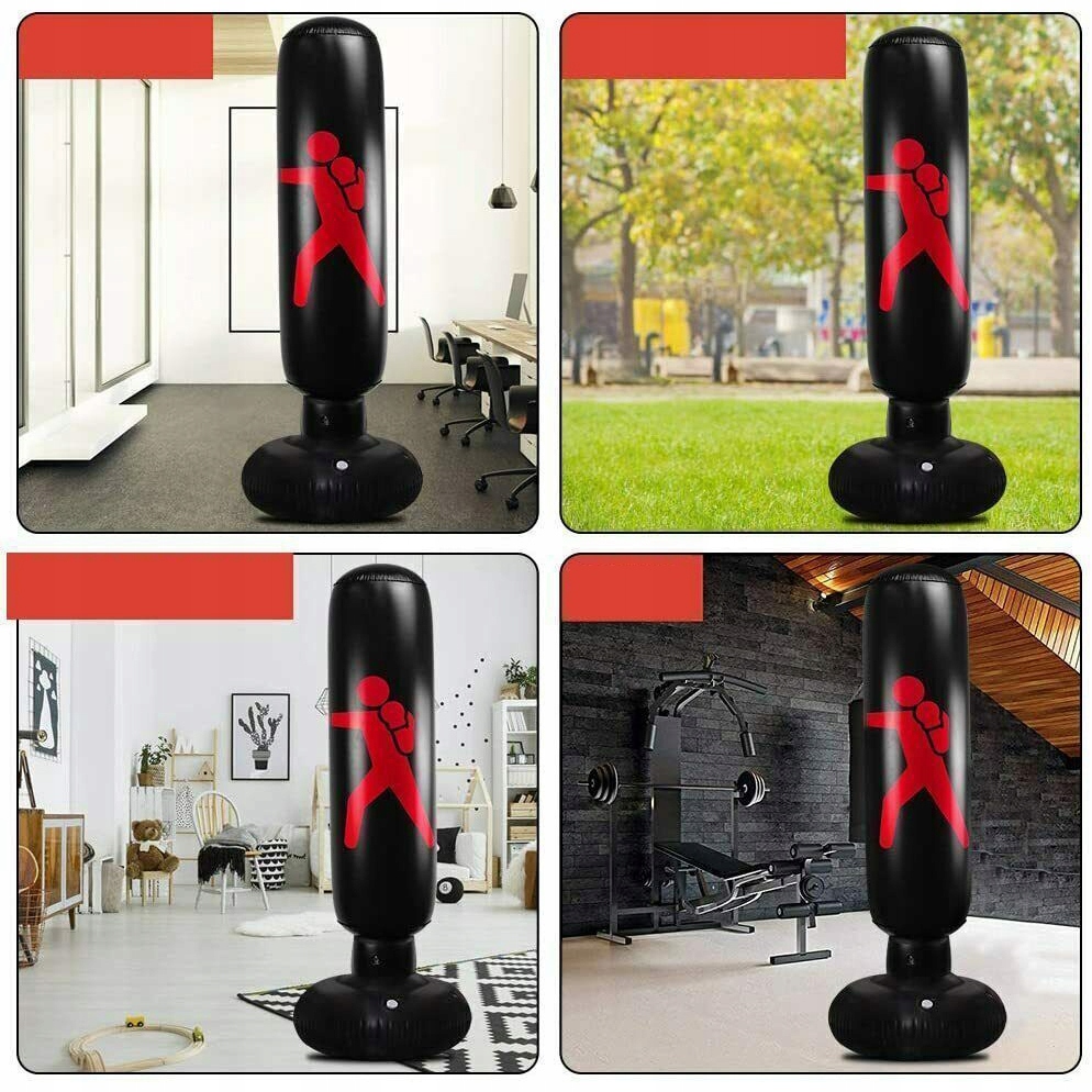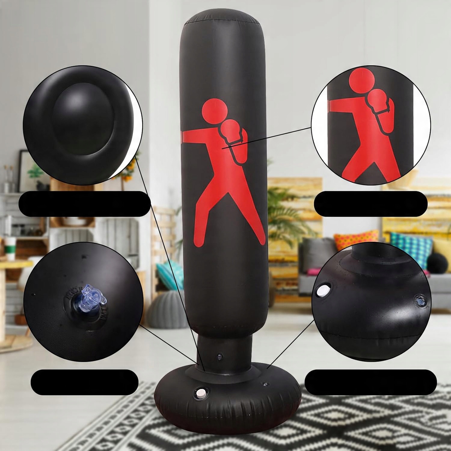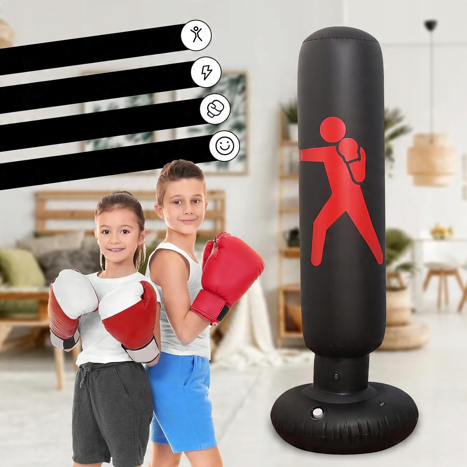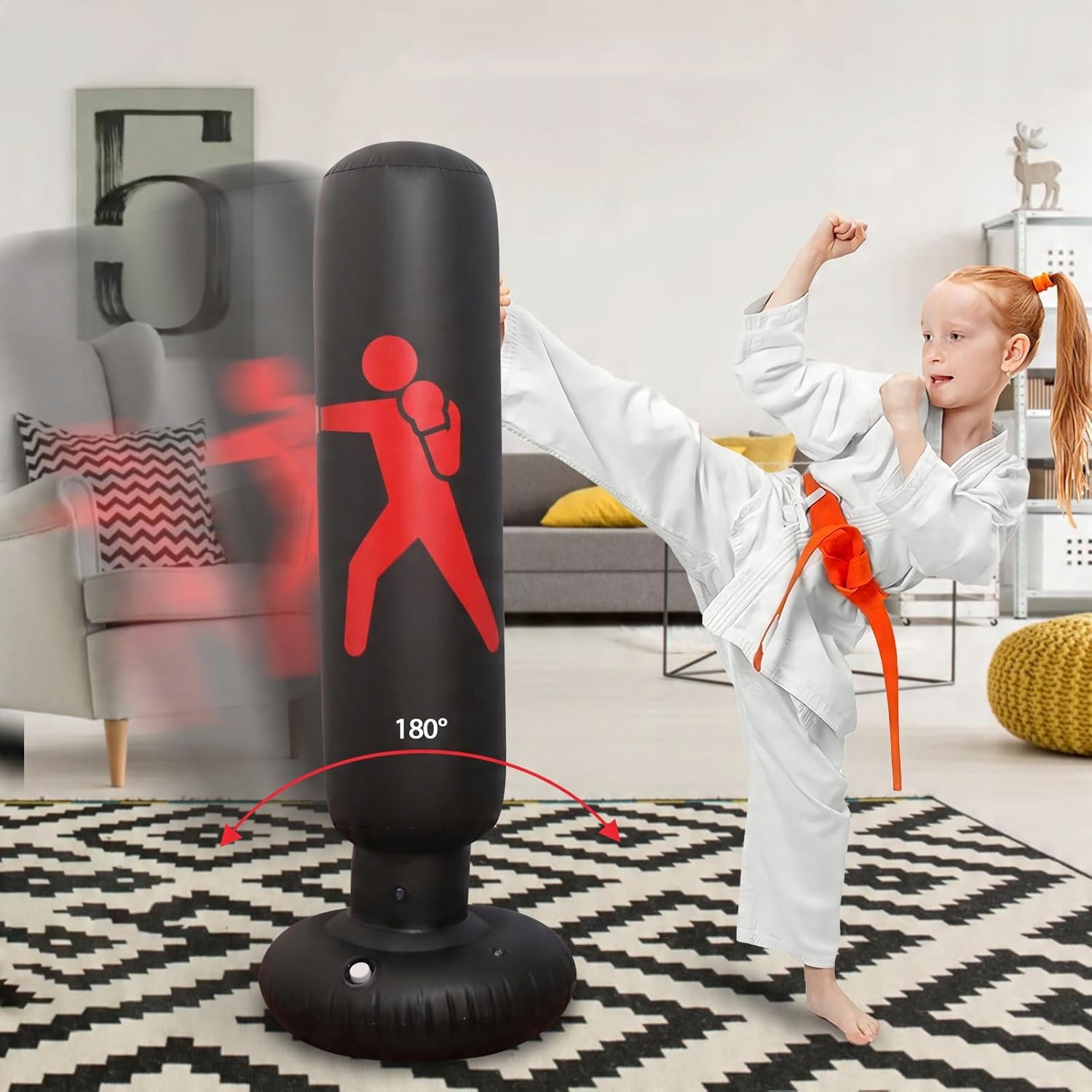🥊【Легкий материал】Эта боксерская груша для детей от 6 лет изготовлена из высококачественного ПВХ-материала, она портативна и долговечна. Дно имеет утолщенную конструкцию, оно более портативно и подходит как для внутреннего, так и для наружного использования. Легко надувать и сдувать, можно сложить для хранения.