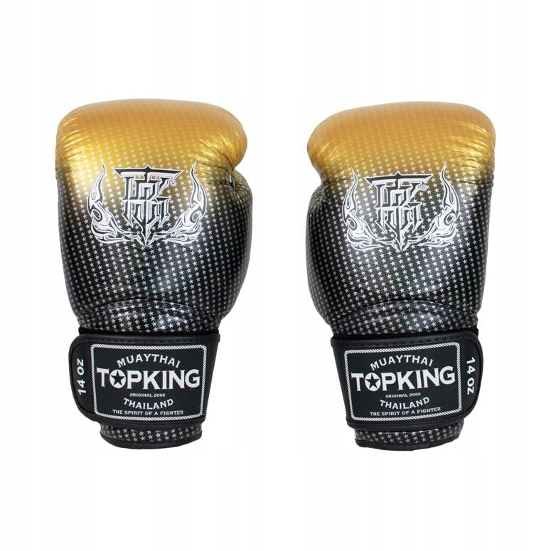 Боксерские перчатки TOP KING SUPER STAR «AIR» — продукт высшего класса, популярный среди любителей и профессионалов. Они идеально подходят для занятий кикбоксингом, боксом и тайским боксом. Серия SUPER STAR имеет характерный звездный принт и доступна в нескольких цветовых вариантах. Вшитая липучка обеспечивает лучшее прилегание перчатки к руке и не соскальзывает даже во время очень сильных и интенсивных тренировок. Широкая застежка-липучка стабилизирует запястье и защищает от травм. Перчатки изготовлены вручную из высококачественной кожи, что делает их удобными и прочными. В их производстве используется многослойная пена, которая прекрасно поглощает удары при ударах, обеспечивая тем самым максимальную безопасность во время тренировок. Технология climacool air обеспечивает лучшую вентиляцию и удаление влаги. Специальная сетка, являющаяся неотъемлемым элементом перчаток, обладает повышенными дышащими и охлаждающими свойствами для кожи рук. TOP KING — один из самых уважаемых производителей оборудования для боевых искусств в Таиланде и в мире.