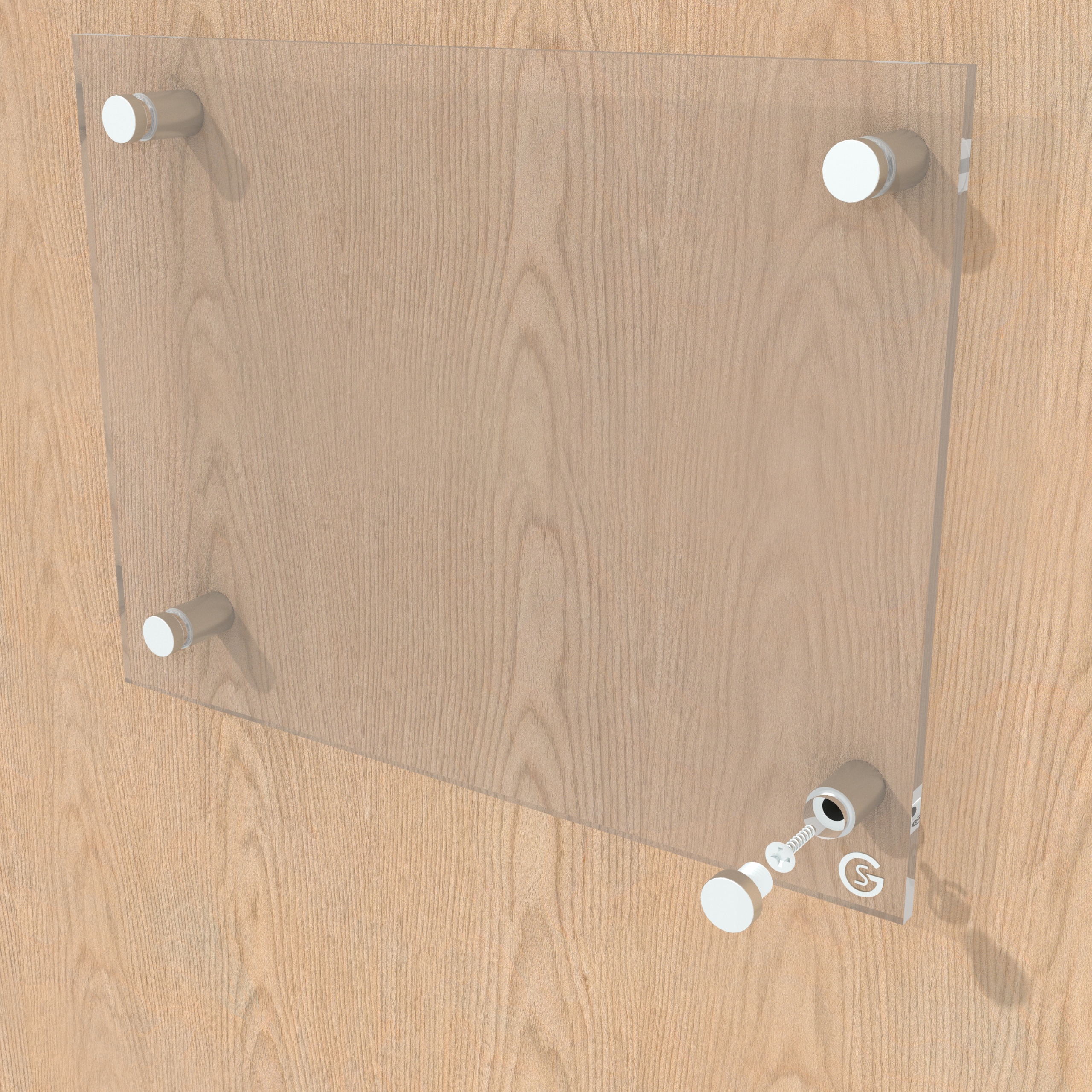 Установка проставки предполагает прикручивание ее к заданной поверхности, затем откручивание дистанционного винта с двумя пластиковыми шайбами, установку стекла или оргстекла и вкручивание дистанционного винта обратно для фиксации детали.