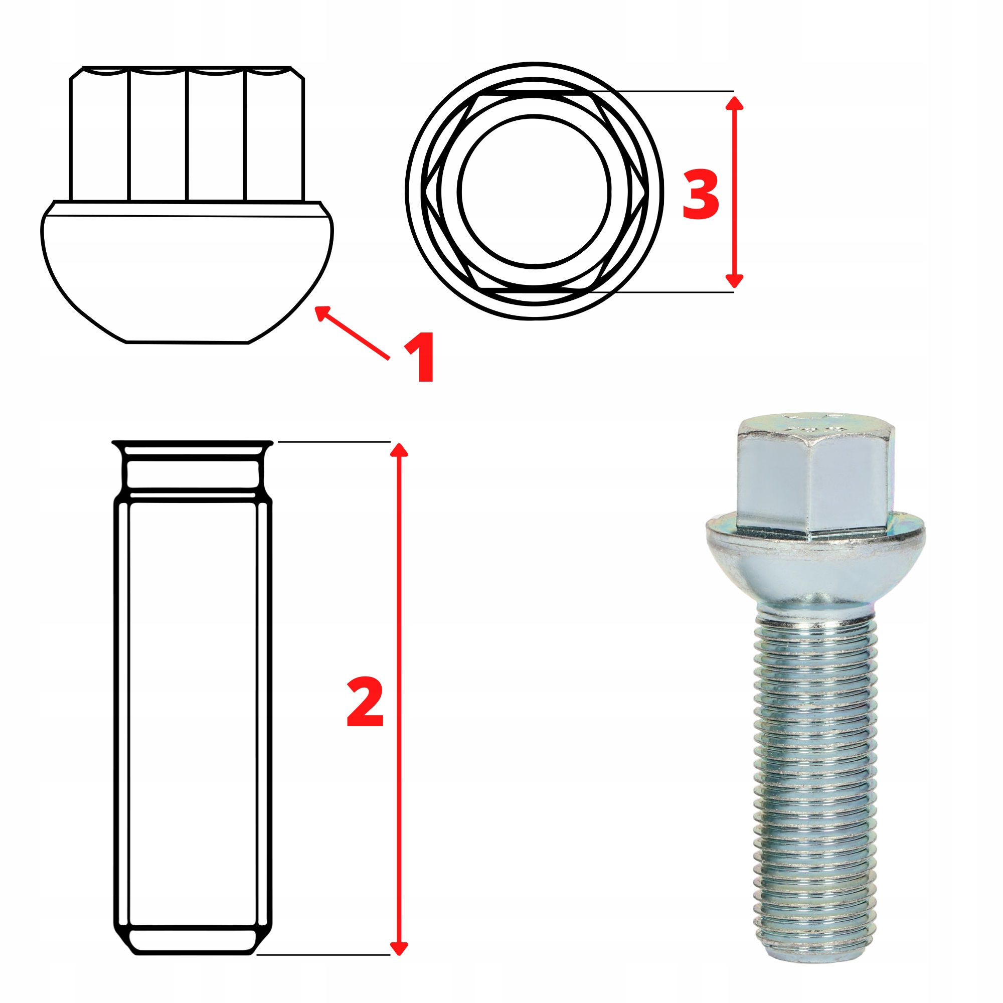 Шариковый винт М12х1,5, 35 мм, ключ К17