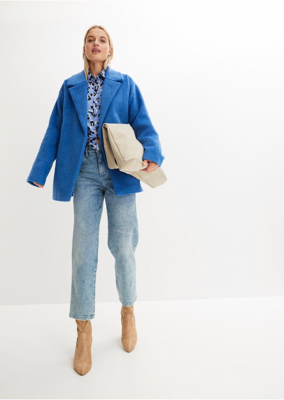 Bonprix płaszcz damski niebieski klasyczny bez kaptura