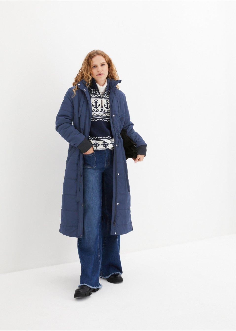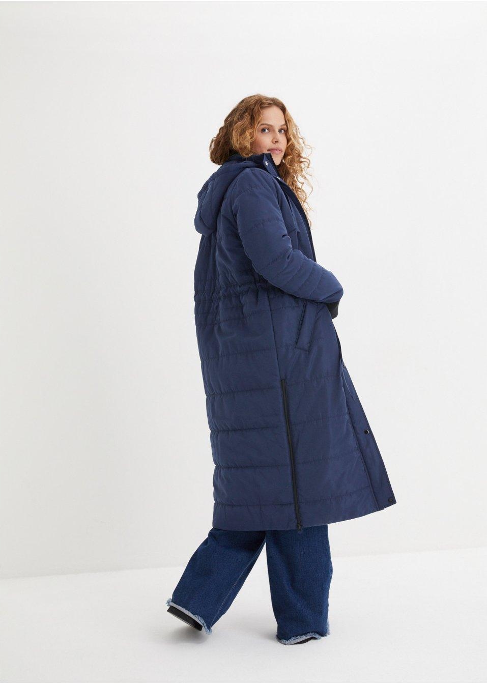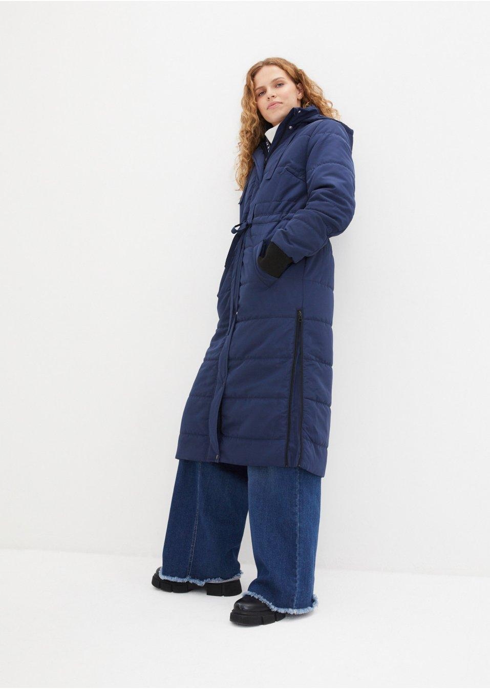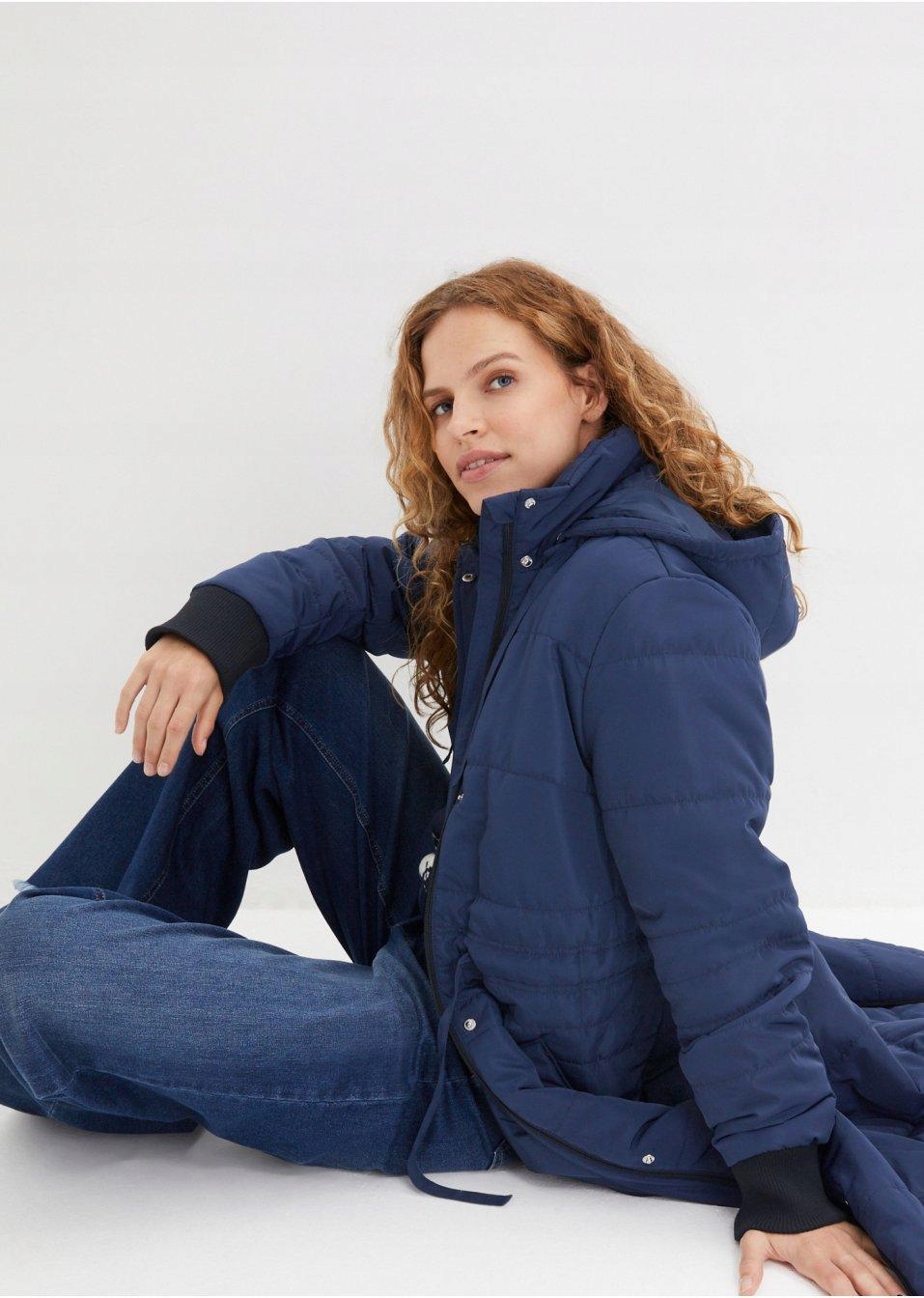 Bonprix płaszcz damski niebieski klasyczny z kapturem