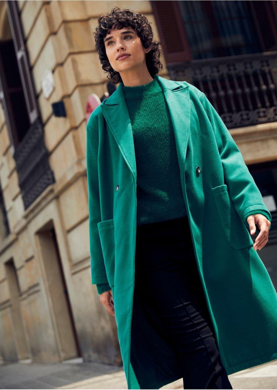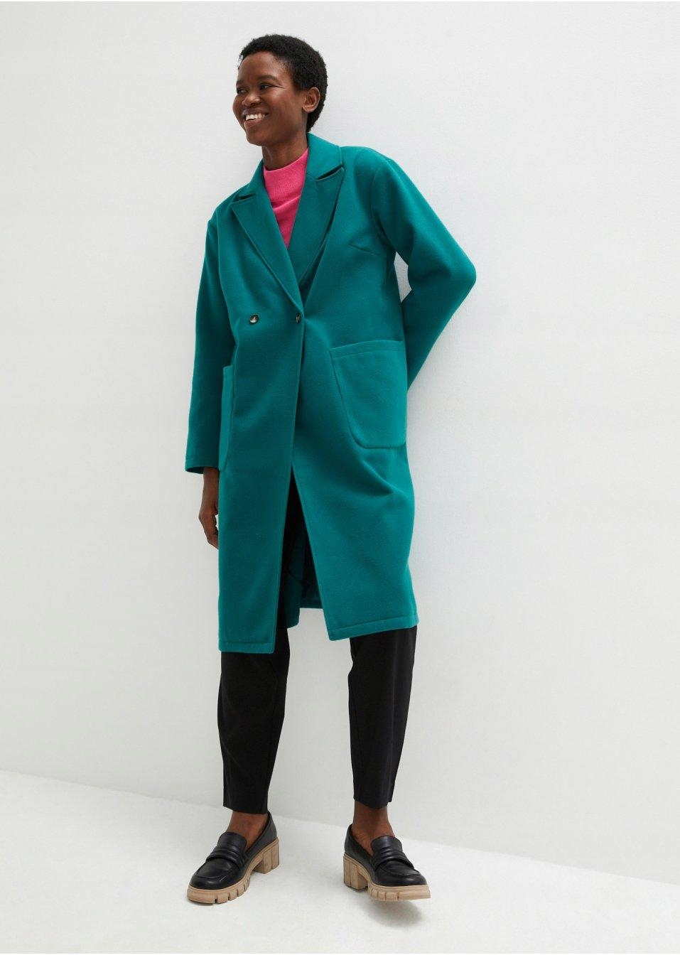 Bonprix płaszcz damski zielony oversize bez kaptura