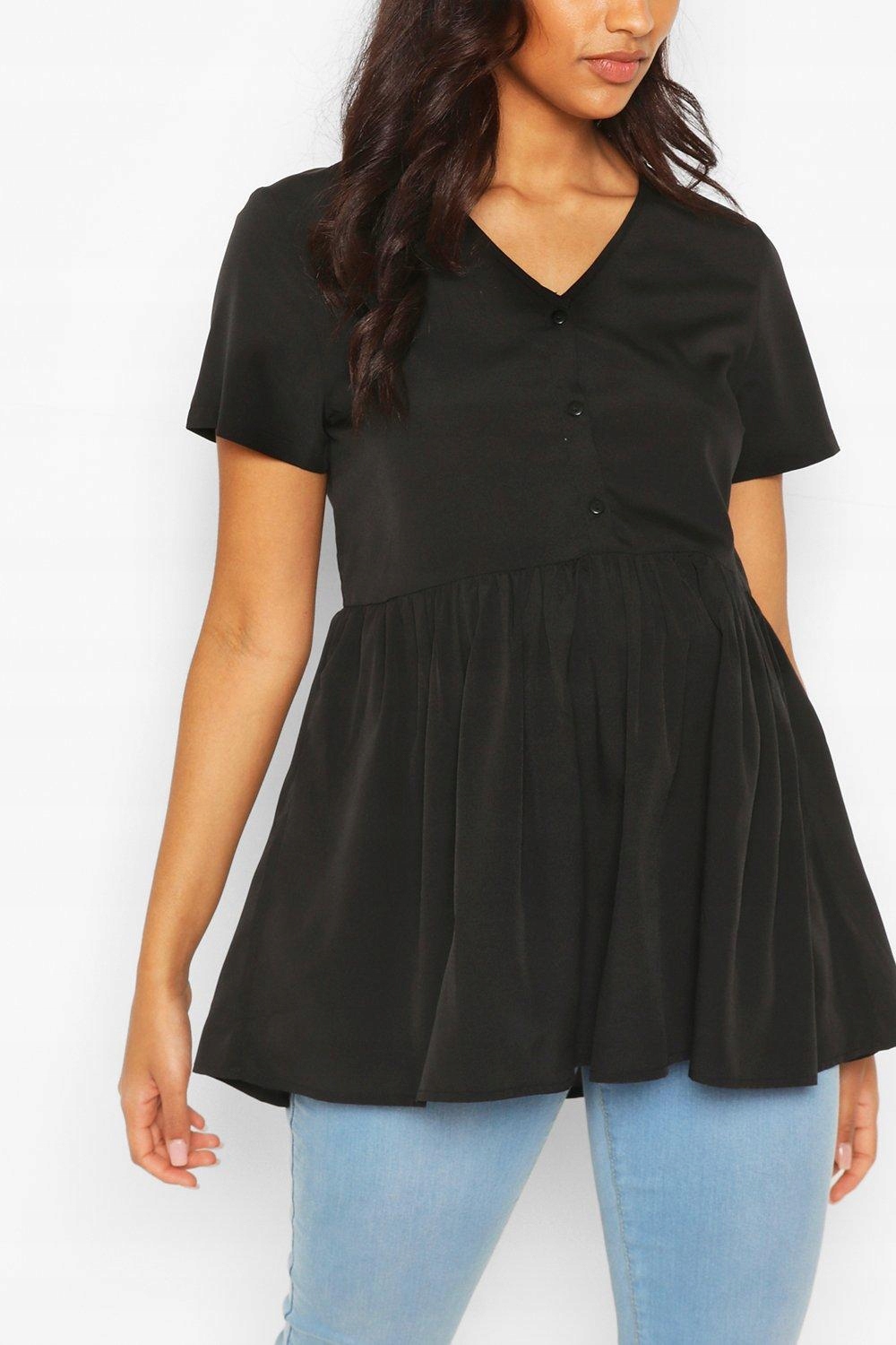 ЧЕРНАЯ БЛУЗКА НА ПУГОВИЦАХ BOOHOO 9F0 B18__L