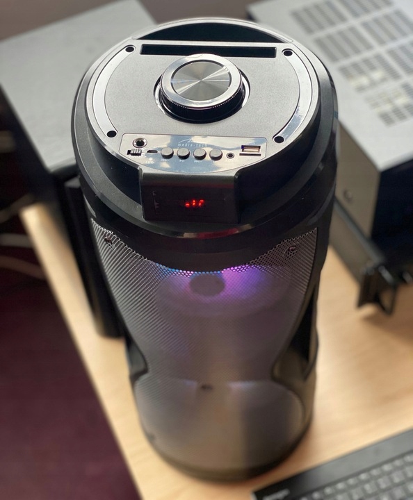 Колонка дополнительно оснащена светодиодной подсветкой, которая создает приятную атмосферу и напоминает атмосферу дискотеки.