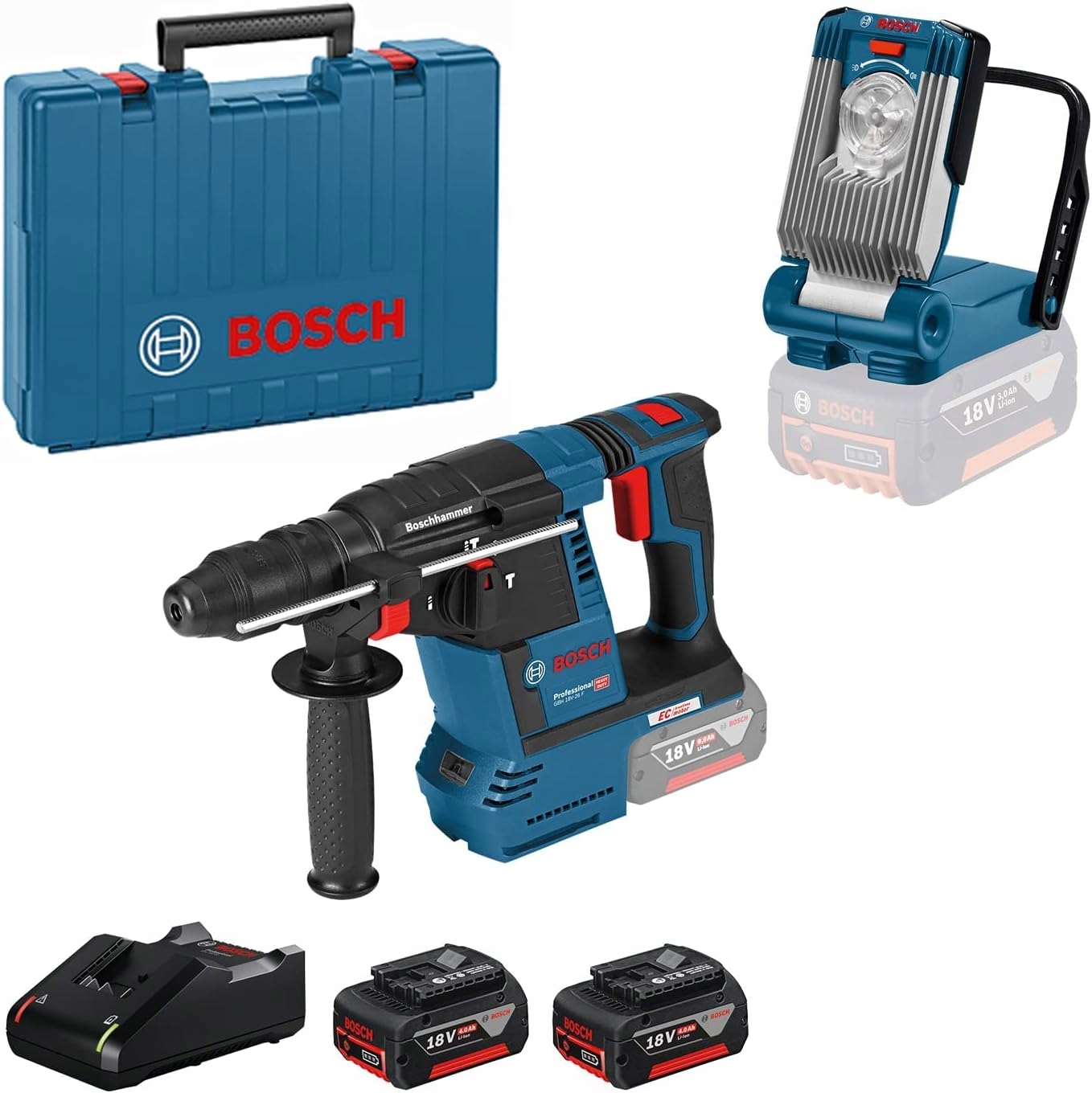 УДАРНАЯ ДРЕЛЬ BOSCH GBH 18V-26F 2x GBA 4,0 Ач GAL 18V-40 VariLED + КОРПУС
