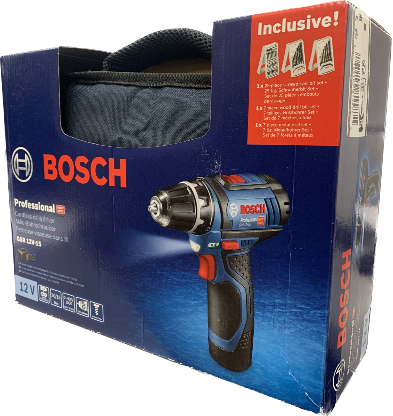 BOSCH GSR 12V-15 2x2.0Ah + аксесуари