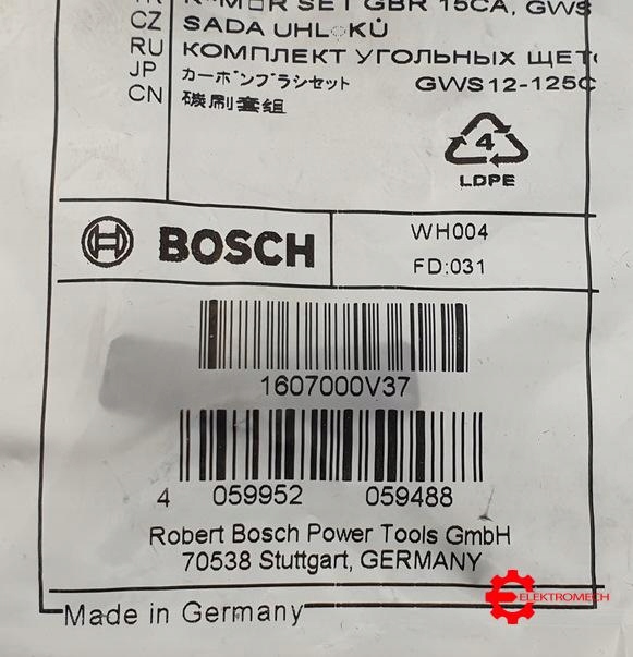 Оплачивая «BOSCH GWS 12 13 15 17 19 оригінальні вугільні щітки для болгарок», вы можете быть уверены, что данное изделие из каталога «Угольные щетки» будет доставлено из Польши и проверено на целостность. В цене товара, указанной на сайте, учтена доставка из Польши. Внимание!!! Товары для Евросоюза, согласно законодательству стран Евросоюза, могут отличаться упаковкой или наполнением.
