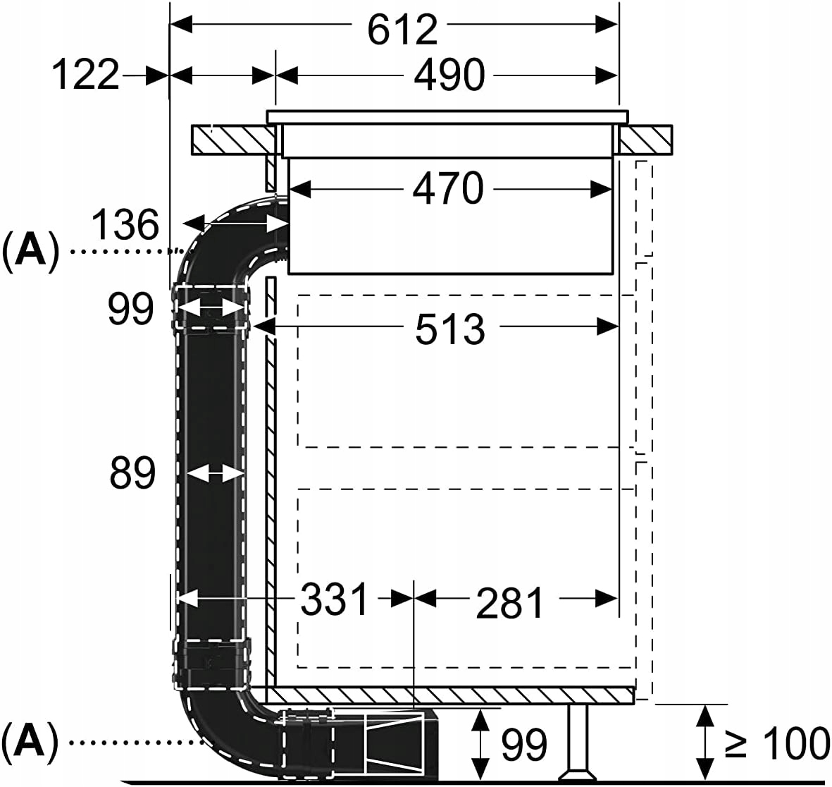- Установочный комплект позволяет подключить вытяжку для переработки. Подходит для кухонь с глубиной столешницы 70 см и более.