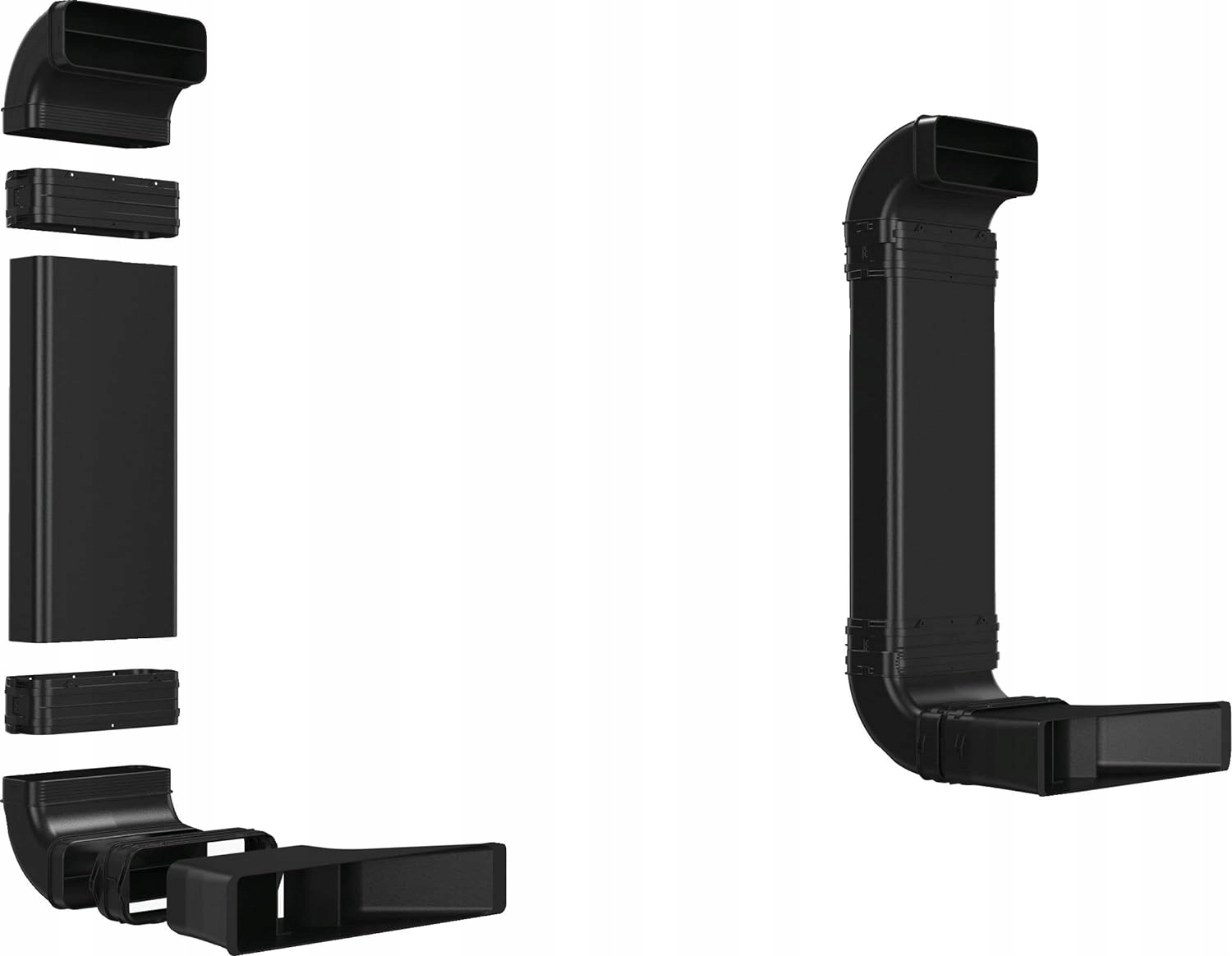 - Включает 2 вертикальных плоских колена, 3 соединения с уплотнением, 1 плоскую оболочку, 1 элемент диффузора.