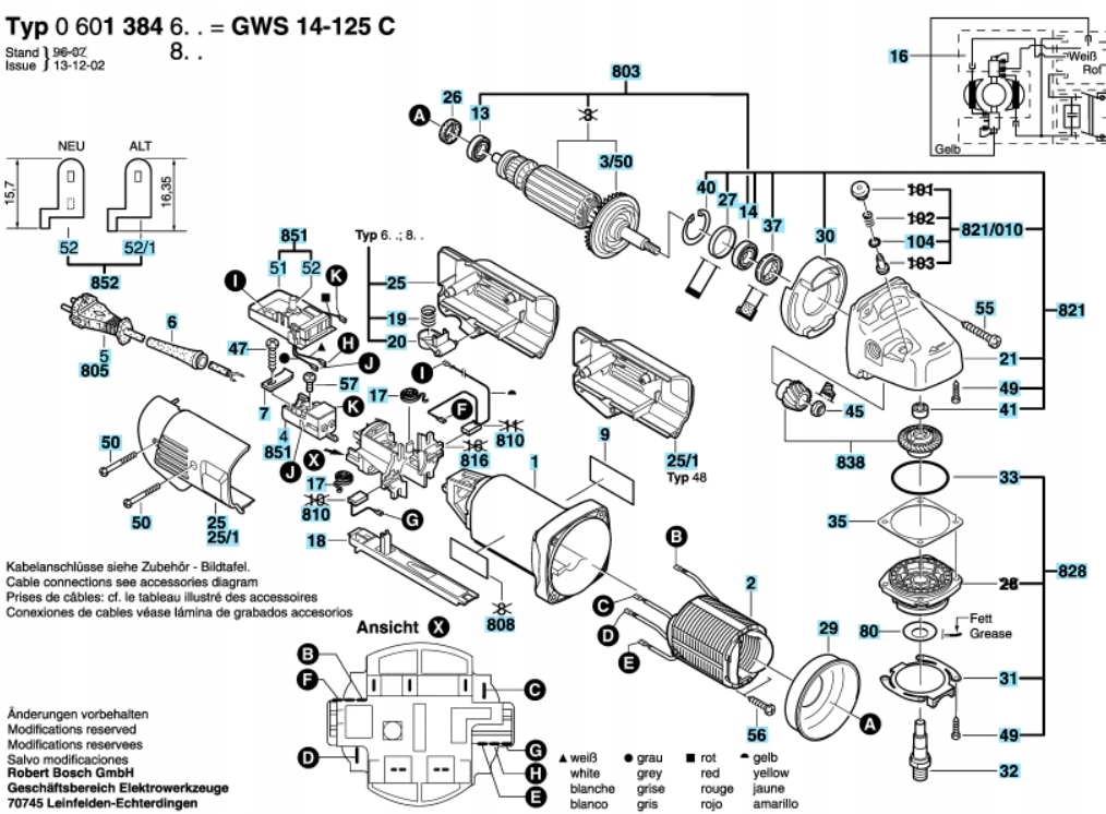 - GWS 14-150 C - Старая модель на форме рычага переключателя, расположенного от нижней части шлифовальной машины.