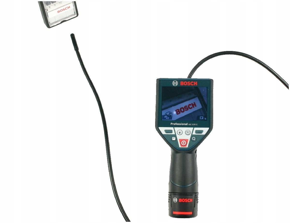 Handy GIC 120 C Инспекционная камера Bosch с гибкой рукой 120 см, которая позволяет вам добраться до твердых мест, например, Скрытые части двигателя, канализационные системы за стеной и тому подобное. Устройство благодаря универсальному использованию идеально подходит для работы каждой профессии, которая имеет дело с трудностями для достижения мест (механика, инспекторы, сантехники, санитарные, отопление, вентиляционные установки)