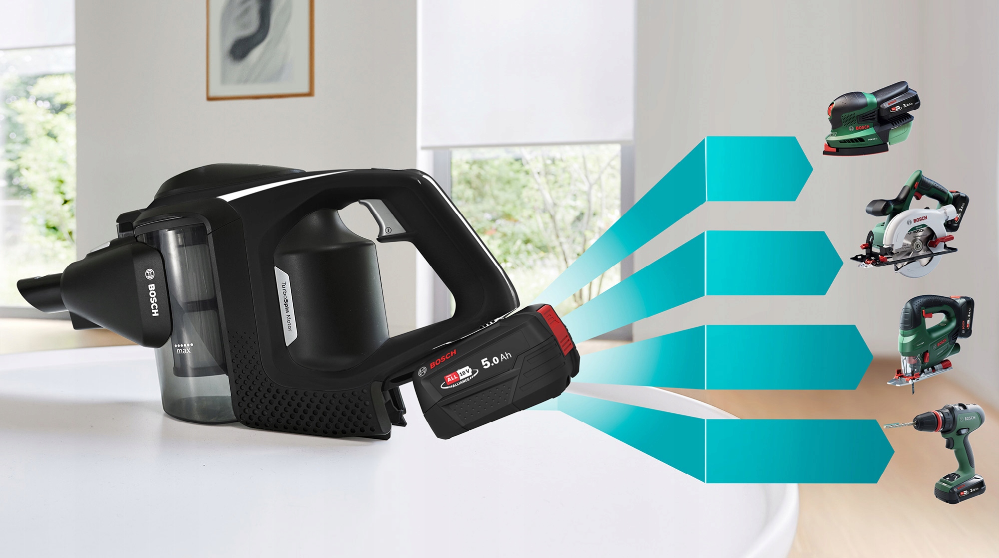 Инновационная Power для всех брендов Bosch устраняет проблему многих различных зарядных устройств и батарей. Все, что вам нужно, - это одна батарея и одно зарядное устройство, которое соответствует всем домашним приборам, бодственным электроинструментам и электроинструментам из зеленой линии в классе напряжения 18 В!