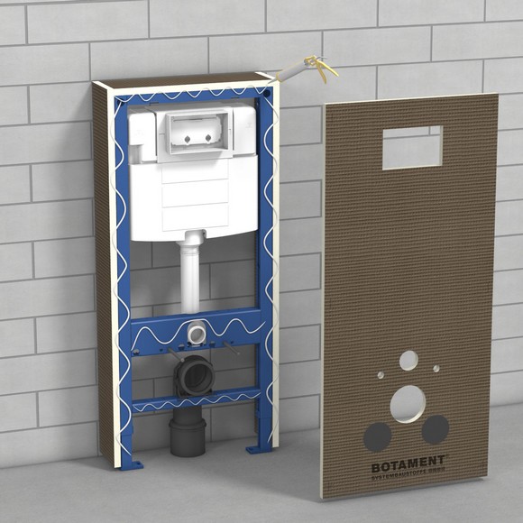 BOTAMENT WC-Basic — фасадная панель из строительной плиты. Ботамент для монтажа большинства скрытых каркасов унитазов. Он оборудован в специально подготовленных усиленных зонах, защищающих от растрескивание керамической плитки в местах давления унитаза и монтажные отверстия, вырезанные на заводе.
