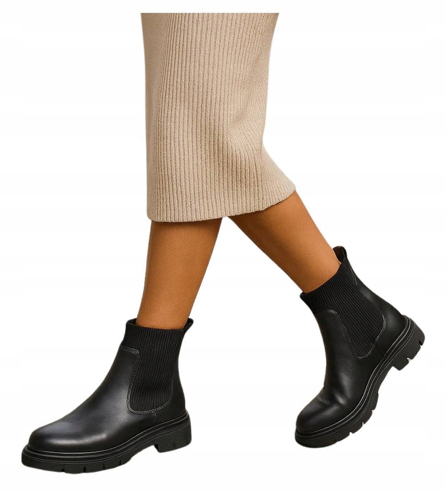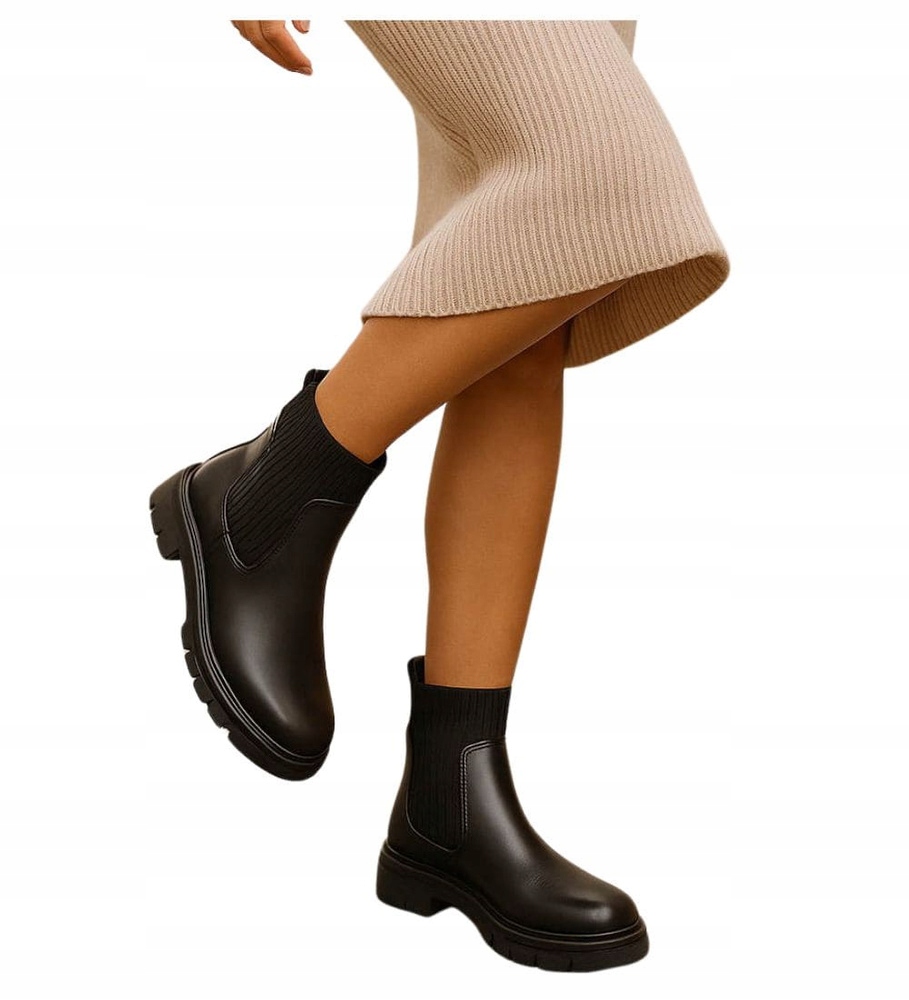 Черные сапоги для девочек с эластичным верхом, слегка утепленные 18339