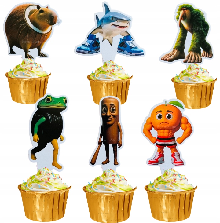 Brainrot Toppers 6 ПК. День рождения кексы кексы кексы Tralalero Thung Sahur