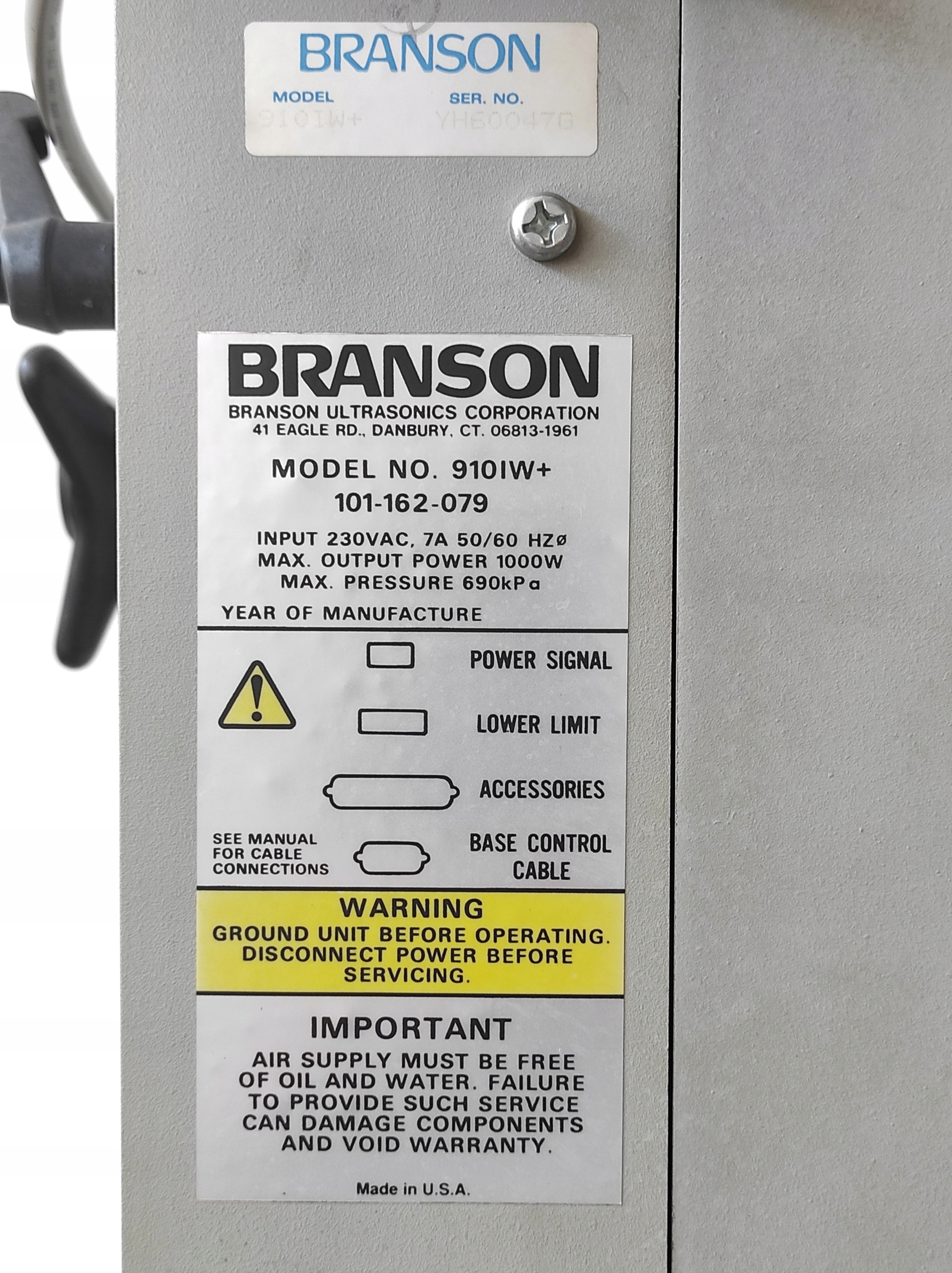 BRANSON 910iw+ 1000W УЛЬТРАЗВУКОВОГО ЗВАРЮВАЛЬНИКА ДЛЯ ПЛАСТМАСІВ + ЗАЗЕМЛЕНИЙ СТІЛ