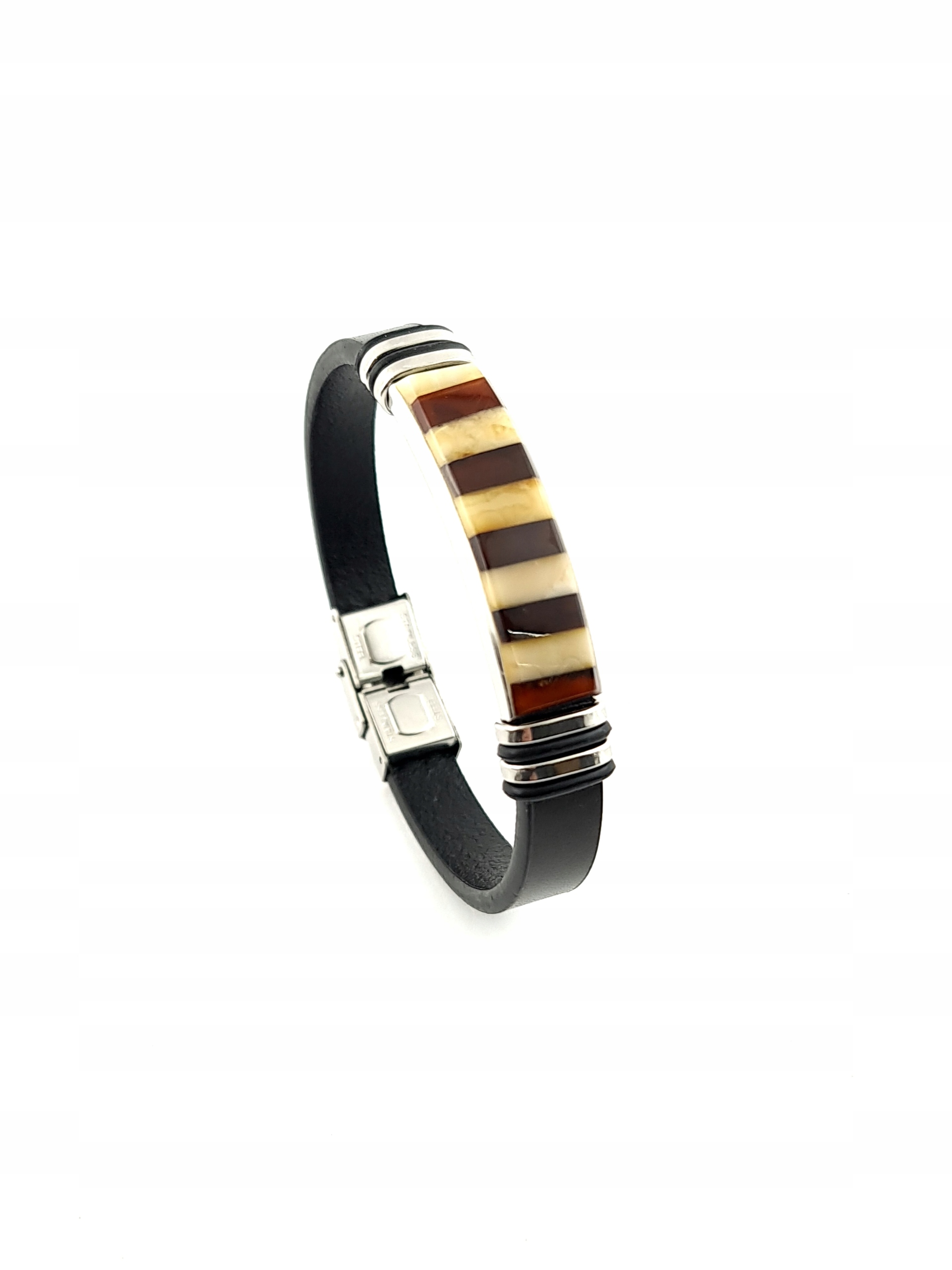 Браслет 100% янтарь на коже с нержавеющей сталью.