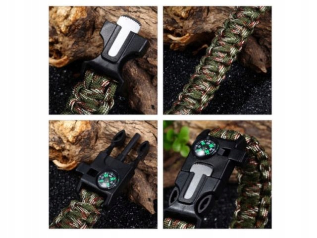 В комплект застежки также входит магниевый стержень длиной почти 2 см. С помощью ножа можно эффективно высекать о него искры, что позволяет эффективно разжечь огонь. Пряжка также имеет встроенный свисток, который может легко издать пронзительный предупреждающий звук. Застежка крепится к паракорду - легкому, прочному, используется в парашютах и поэтому широко применяется при спасательных операциях. Его можно использовать по-разному, и его назначение ограничивается только фантазией пользователя.