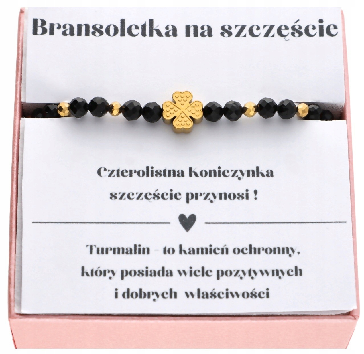 Браслет НА ЩАСТЯ з чорним турмаліном і конюшинкою в подарунок