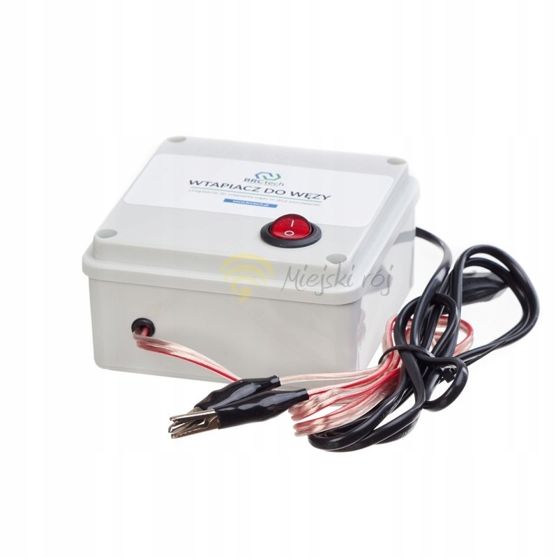 Очень прост в использовании. Прикрепляем «зажимы-крокодилы» к противоположным концам натянутой проволоки в рамке, включаем прибор и размещаем пчелиную змейку на проволоке. Через некоторое время шланг заделывается и рамка готова к установке в улей.
