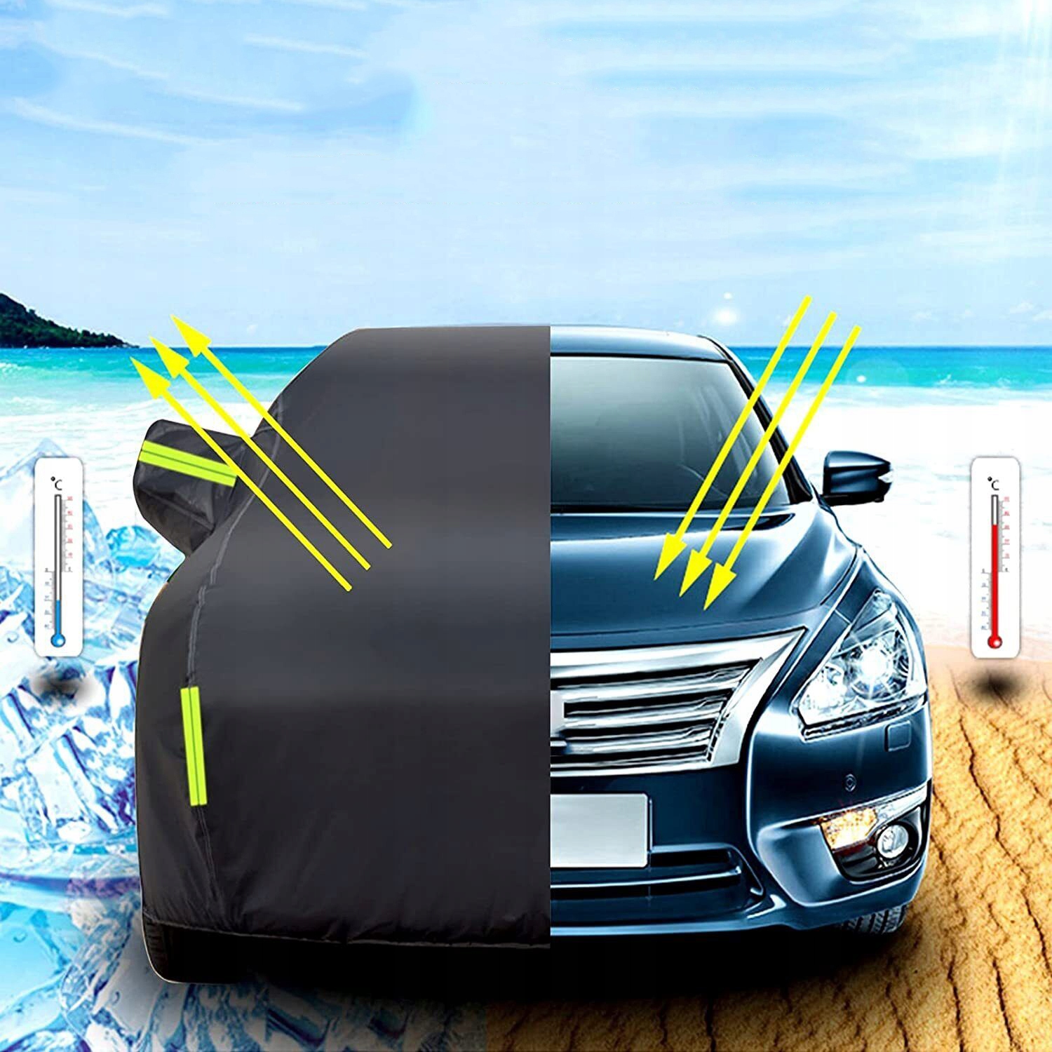 🚗【Многофункциональный】Автомобильный чехол водонепроницаем, пыленепроницаем, защищен от солнца, ультрафиолета, снега, высоких температур, грязи, старения и так далее. Эффективно защищает автомобиль от дождя, солнца, вредного УФ-излучения, пыли, снега, града, мороза и птичьего помета. Идеально подходит для использования внутри и снаружи помещений.