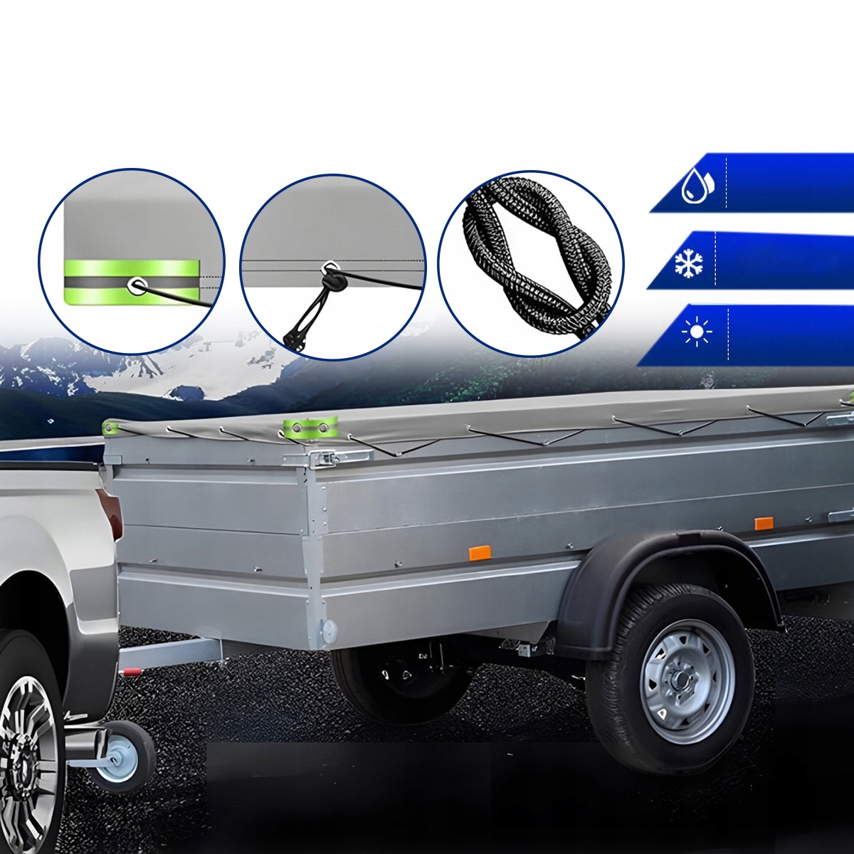 - Прочный, используется для покрытия содержимого прицепа для защиты.