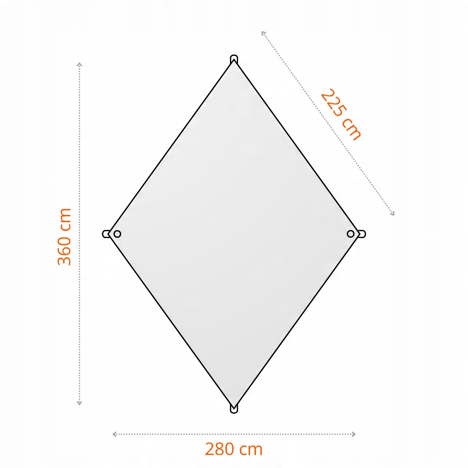 ❗ Majestic Sport Umbra — классический походный брезент ромбовидной формы. Изготовлен из полиэстера Оксфорд, это водостойкий и прочный материал. Нижний слой листа покрыт покрытием, блокирующим УФ-излучение, обеспечивающим тень даже в самую жаркую погоду. Tarp Majestic Sport UMBRA имеет 6 точек крепления, что обеспечивает базовые возможности конфигурации. Благодаря кожаным проушинам его можно закрепить прямо на земле с помощью трекинговых палок.
