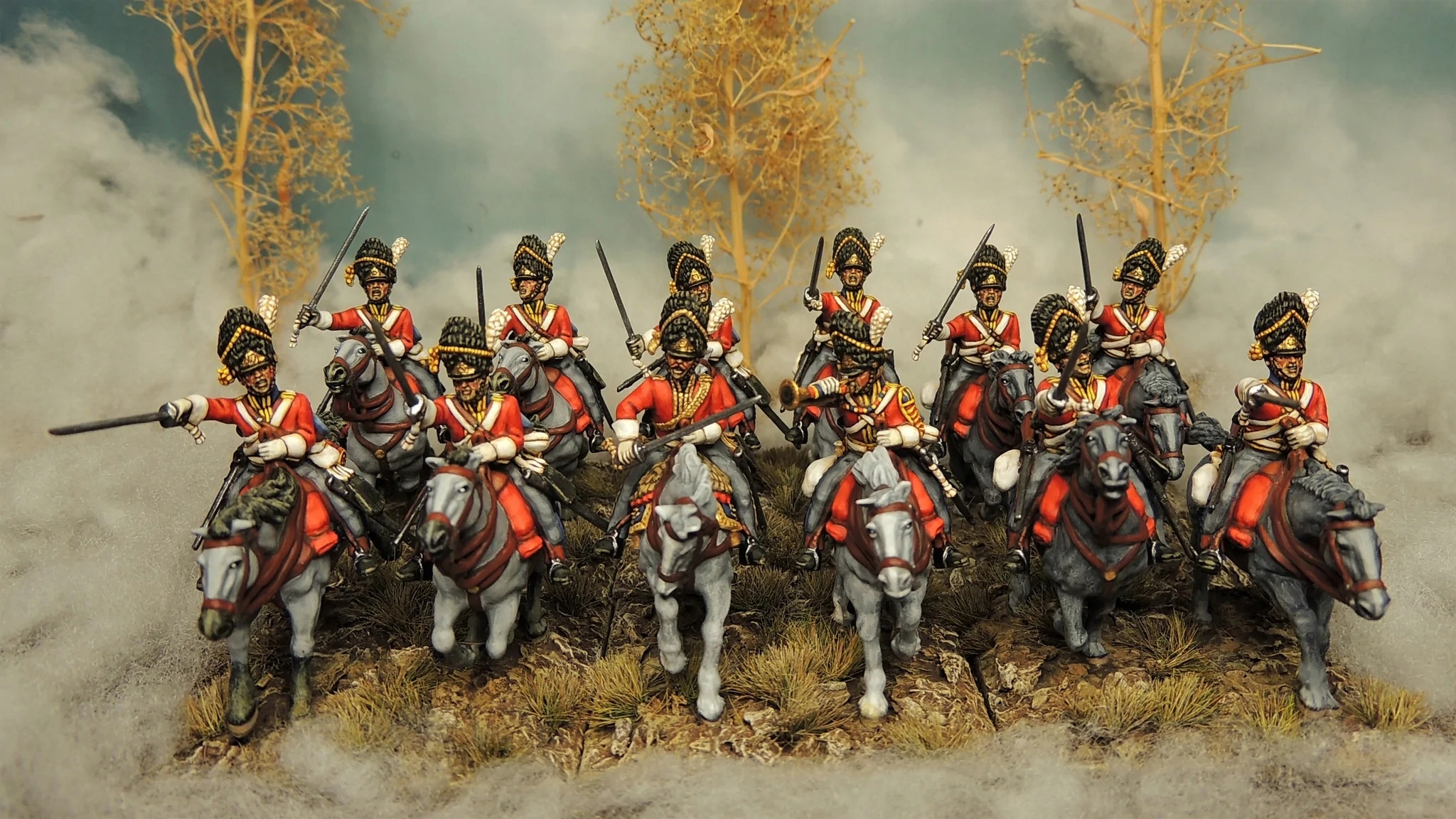 Этот очень подробный набор имеет много вариантов головы и оружия, чтобы создать разнообразную и динамичную единицу зарядки британских драконов, включая командную рамку с трубачом и офицером.