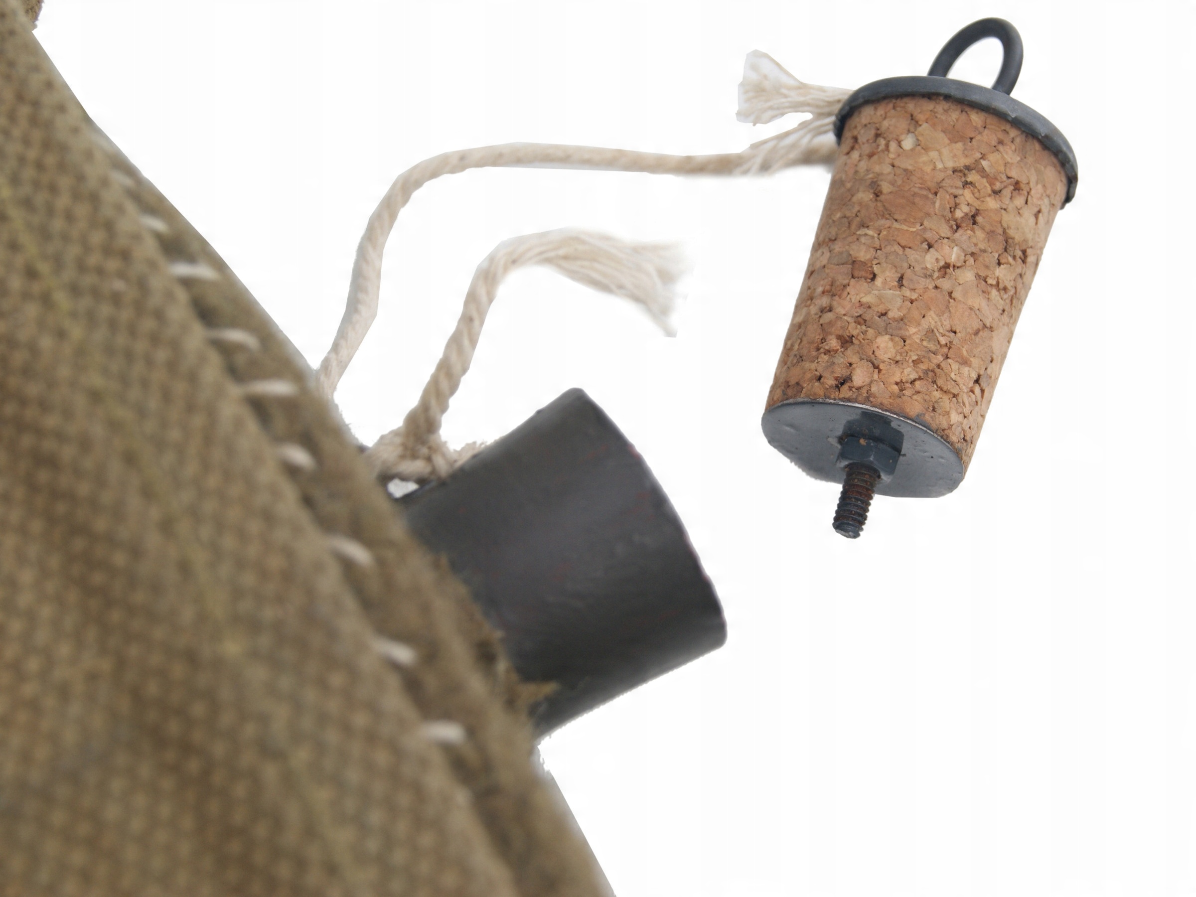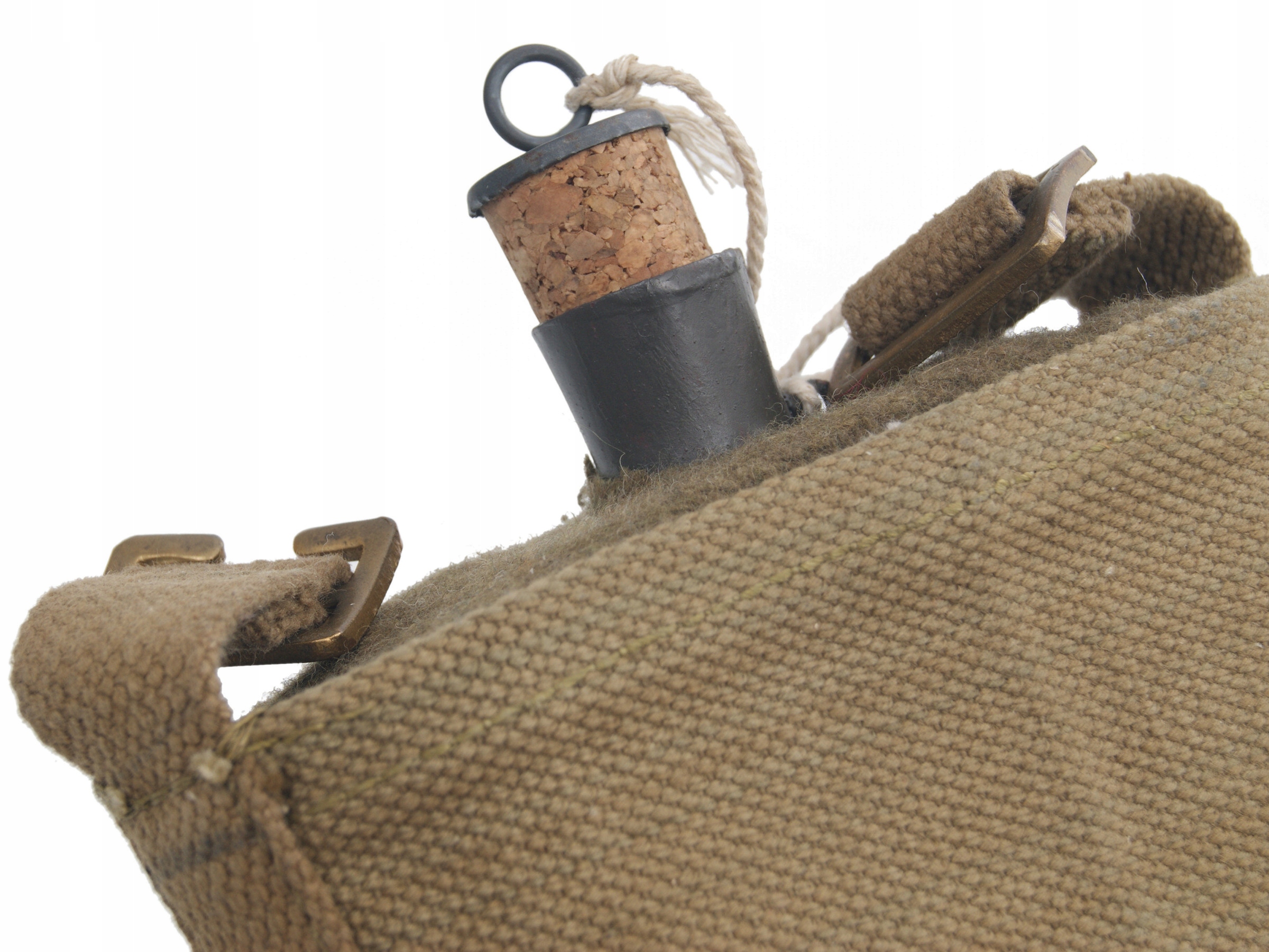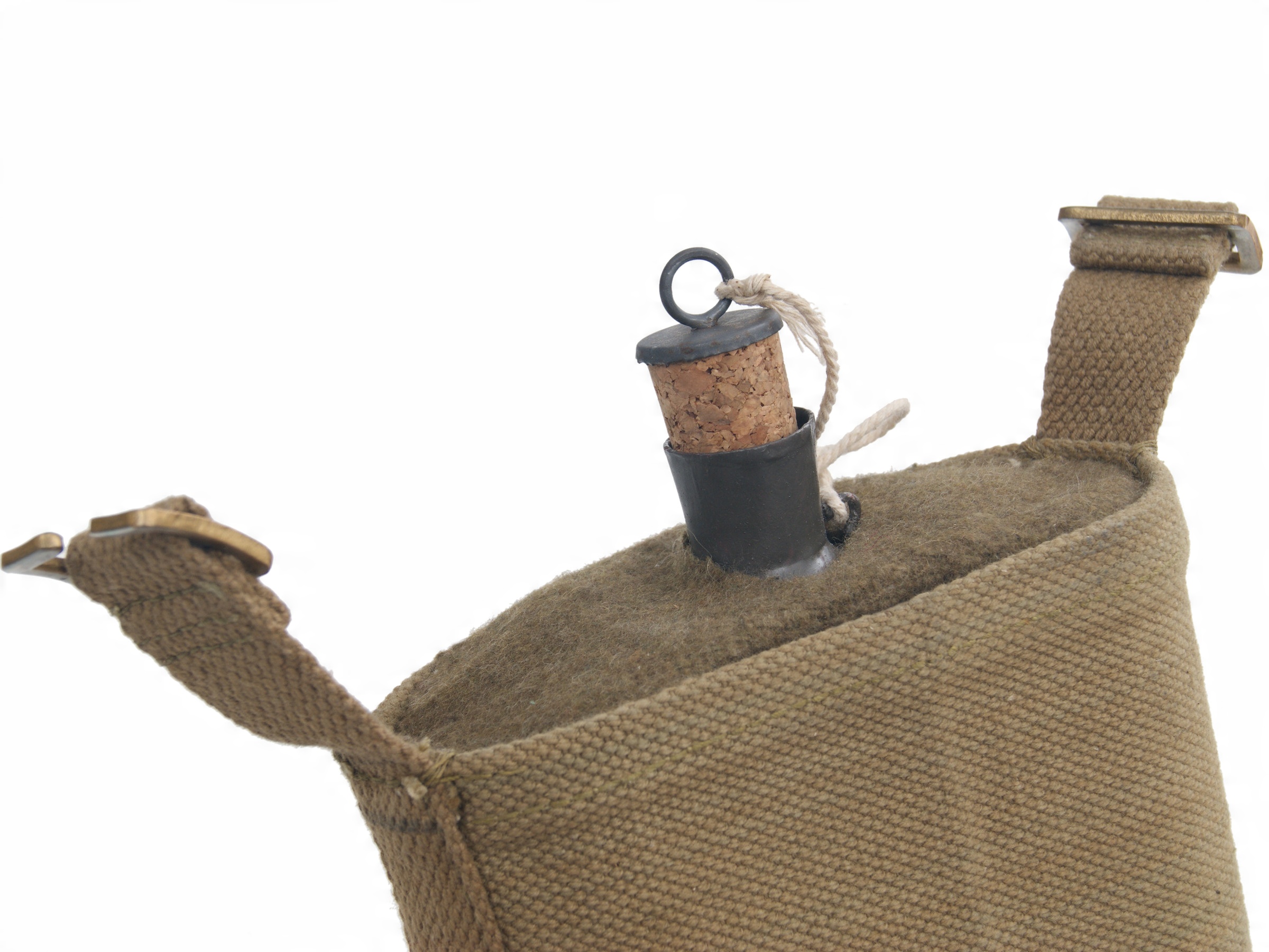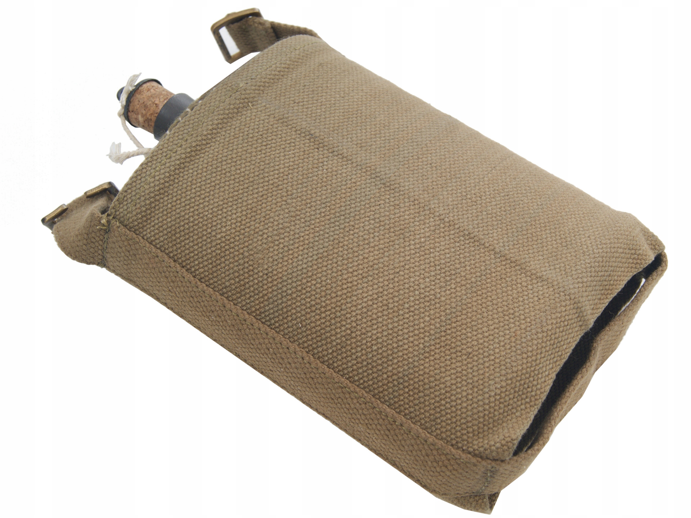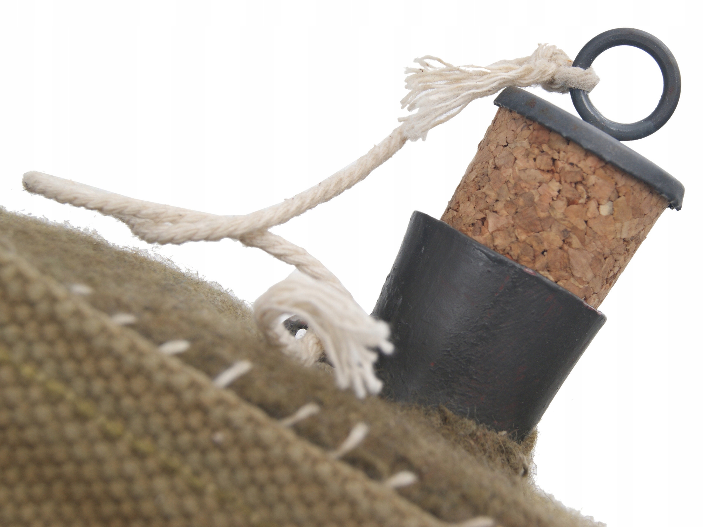 Фляга стальная, со стопором, обшитая тканью цвета хаки.