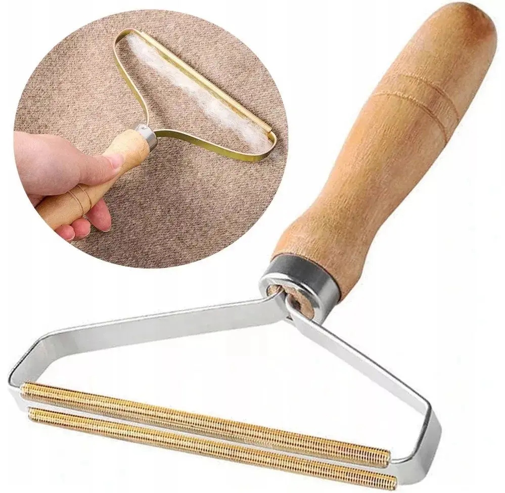 Бритва с удобной деревянной ручкой легко удалит катышки со свитеров, пальто или толстых шарфов, придав им вид новых.