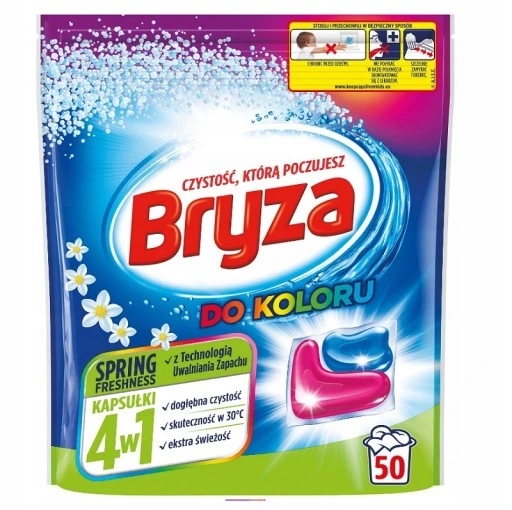 Bryza 4in1 Spring Freshness Freshaty Capsules Color - это инновационное решение для людей, которые ценят как эффективность, так и удобство. Они идеально подходят для повседневного использования, гарантируя безупречно чистую и свежую прачечную. Капсулы Bryza 4in1 характеризуются четырехкратной очисткой: они удаляют пятна, защищают цвета, обеспечивают длинную свежесть и придают тканям шелковистый блеск. Формула, используемая на выбранных активных ингредиентах, эффективно справляется с различными типами грязи. Bryza Spring Freshness с инновационной технологией нейтрализации запаха, насыщает вашу одежду свежестью весеннего воздуха, которая сопровождается нежным, но длительным запахом. Пакет содержит 50 капсул, что переводится на производительность и сохранение - одной капсулы достаточно для одной белья. Легко растворимые капсулы могут быть добавлены непосредственно к барабану стиральной машины. Эффект? Идеально чистая одежда, которая пахнет свежестью еще долго после стирки.