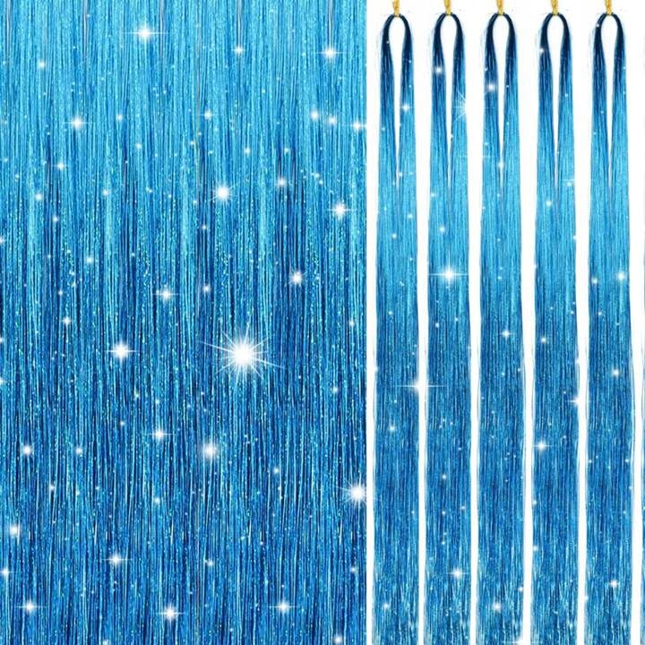 Brokatowe NITKI włosy syntetyczne przedłużanie NIEBIESKIE PASMA