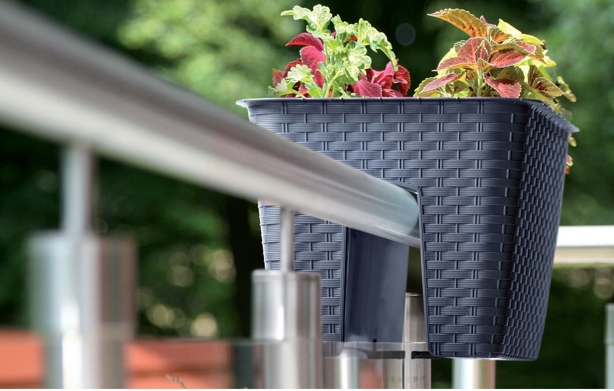 Пот Ratolla - это верная имитация естественной ротантной косички , без его недостатков благодаря ей от него от устойчивых к внешним условиям пластмассы. Вот почему балконные горшки из этой коллекции великолепны в садовых пространствах и на балконах. подходит для закрепления балконов и поручников, они не требуют дополнительных ручек подвески.