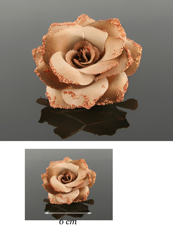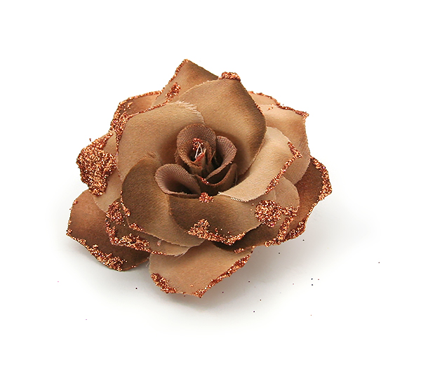 БРОШЬ РОЗА С БЛЕСКАМИ ПЫЛКИ, КОРИЧНЕВАЯ