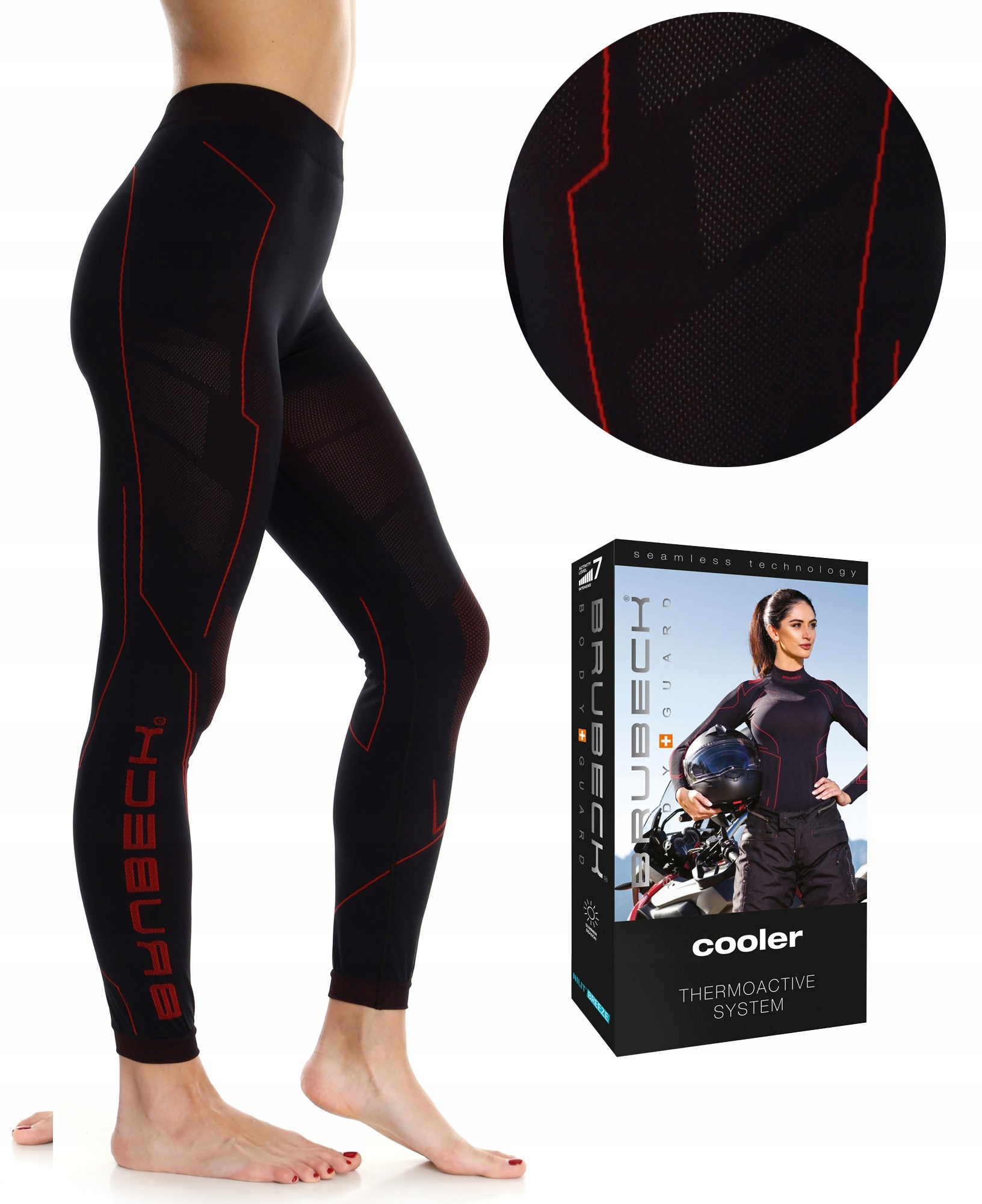 BRUBECK COOLER WOMEN - БЕСШОВНЫЕ ДЛИННЫЕ БРЮКИ ДЛЯ МОТОЦИКЛИСТОВ - серия МОТОЦИКЛОВЫЕ БРЮКИ Cooler изготовлены на современных вязальных машинах, позволяющих производить термоактивную бесшовную одежду. ОТСУТСТВИЕ БОКОВЫХ ШВОВ означает отсутствие потертостей и комфорт при езде несравненно выше, чем в случае с традиционным хлопковым бельем