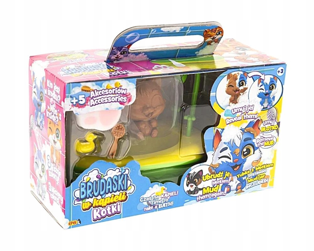 Познакомьтесь с коллекцией милых котят, которых можно испачкать грязью, помыть и начать веселье заново! Грязные купающиеся коты — очаровательные фигурки, созданные, чтобы подарить детям массу радости и бесчисленные возможности для творческих игр. Благодаря специальному покрытию их легко чистить, а аксессуары, входящие в комплект котят, сделают игру еще веселее.