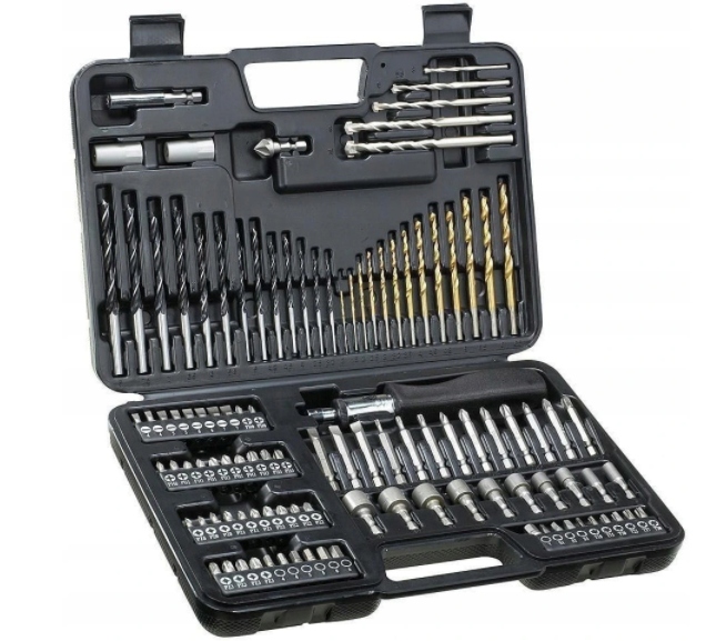 - Содержит самые полезные сверла, биты, головки и другие аксессуары, полезные в каждом доме.
