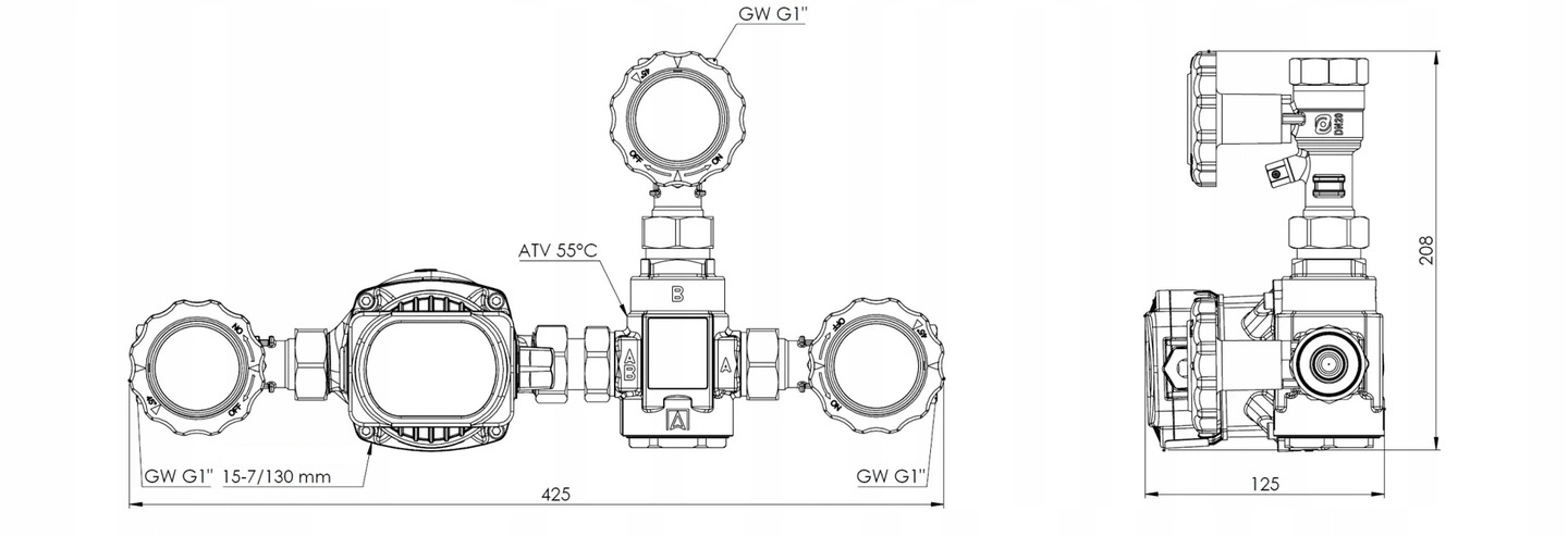 Группа BTA установлена на температурном клапане ATV 225 (номинальная температура 55 ° C).