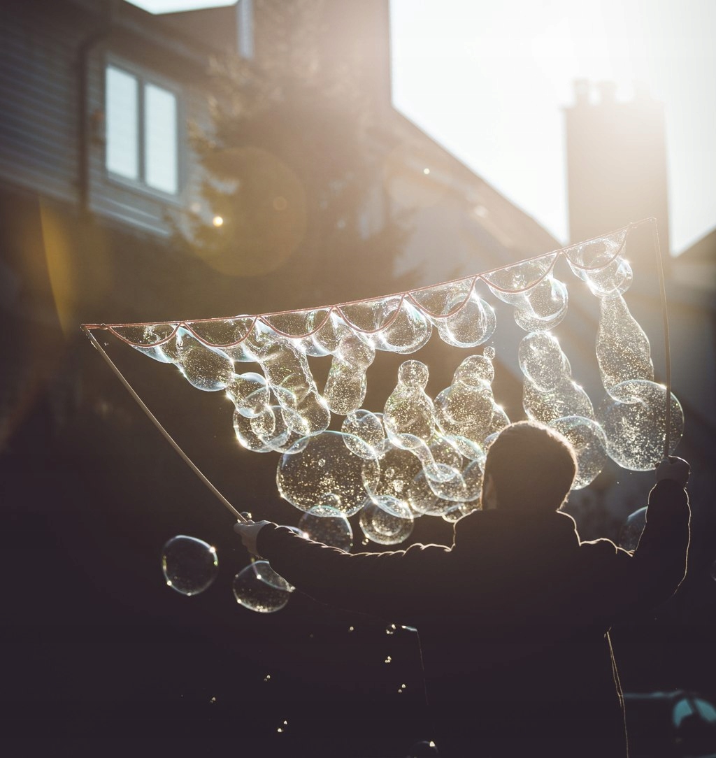 При использовании барботера Sto Bubbles с пузырьковой жидкостью Peter&Pat пузырьки закрываются самопроизвольно. Из-за размера инструмента достаточно небольшого ветра, чтобы создать множество крошечных мыльных пузырей. Если ветра нет, двигайтесь назад с выдвинутым барботером, чтобы создать движение воздуха, заполняющего оболочку пузыря.