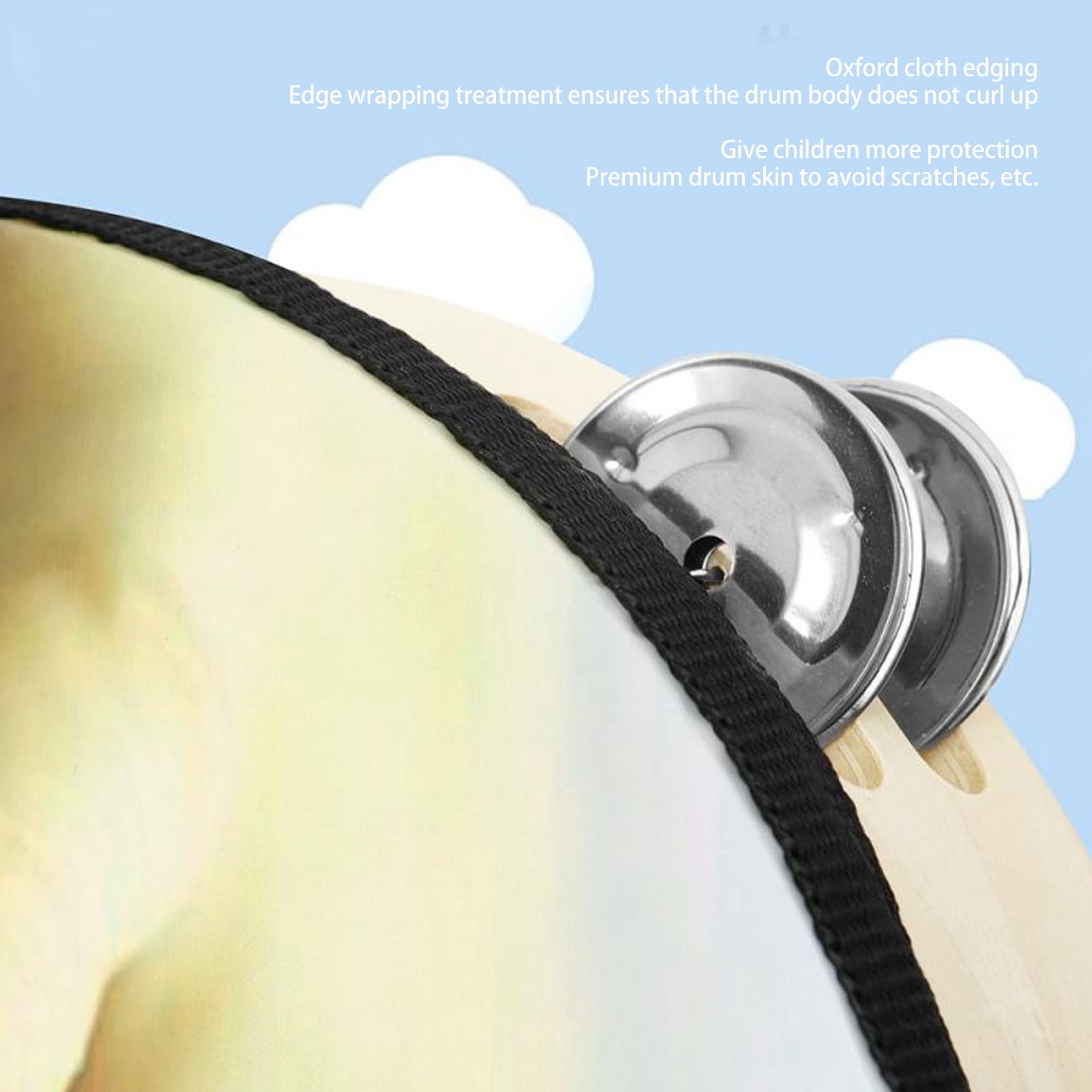 3. ДВУХСТОРОННИЕ ЗВОНКИ ИЗ НЕРЖАВЕЮЩЕЙ СТАЛИ: Бубен оснащен двухслойными колокольчиками из нержавеющей стали, которые при встряхивании издают чистый и мелодичный звук. Подходит для сопровождения в музыкальных группах или в качестве знакомства с музыкой для детей.