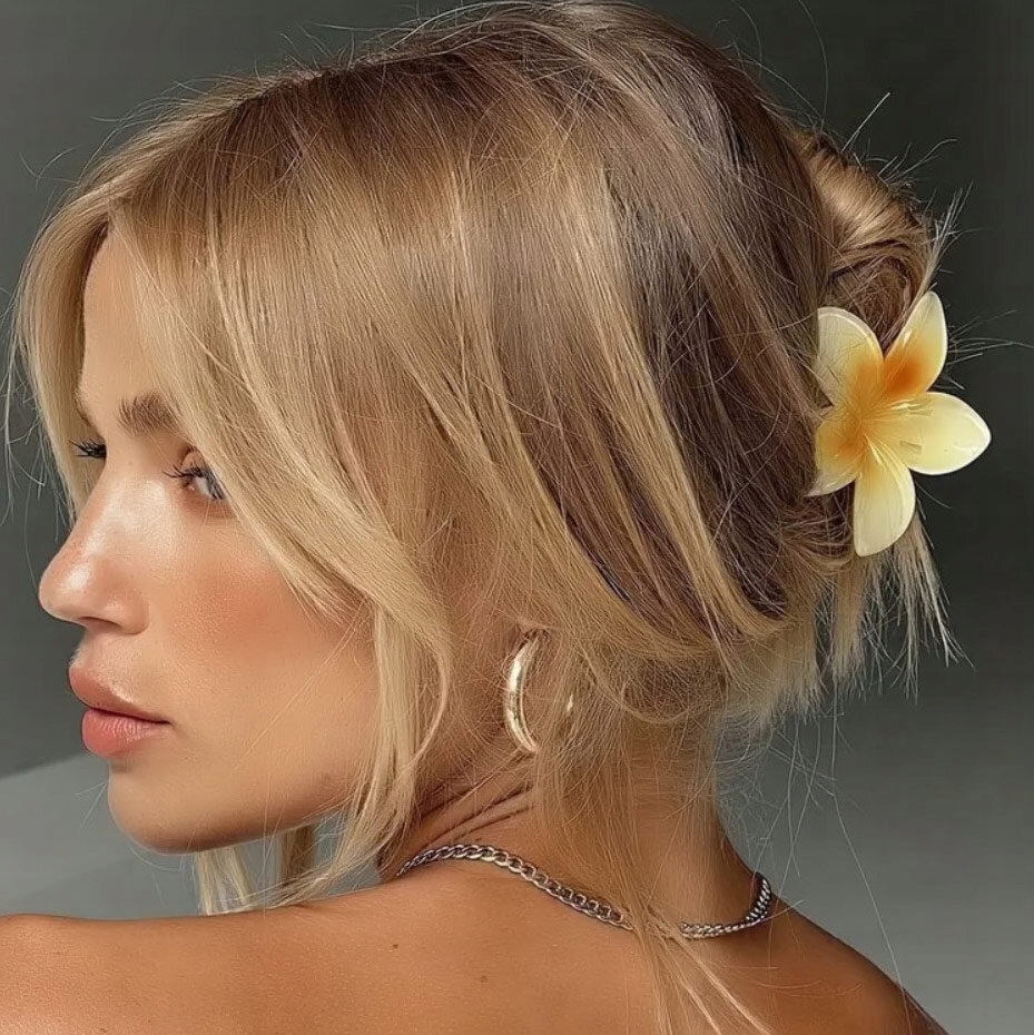 ПРЯЖКА челюсть, заколка, большой цветок, ЦВЕТЫ, ГАВАЙСКАЯ лягушка. Заколка для волос на подбородке, большой гавайский цветок