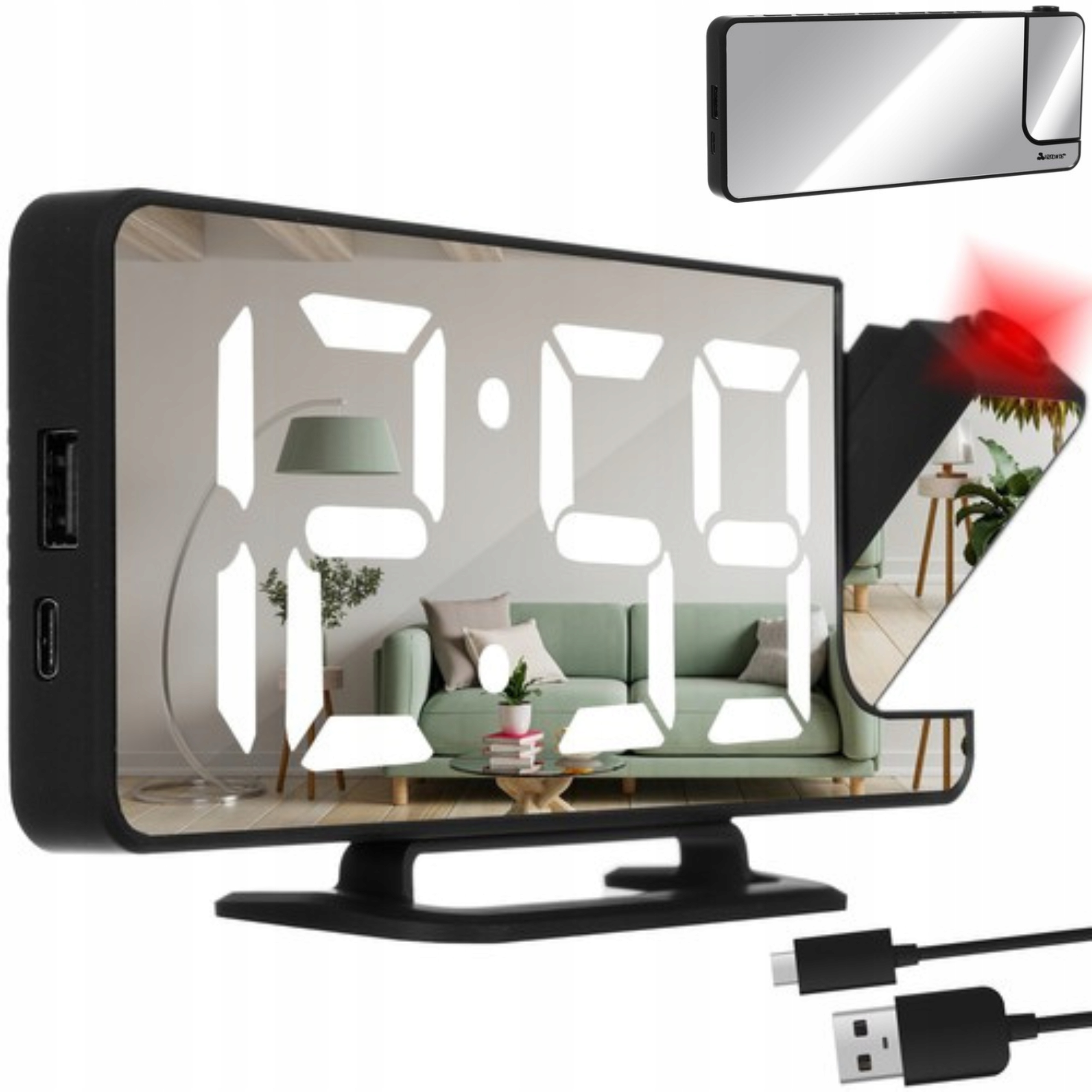 Здесь мы находим отображение времени, проектор, функцию будильника и практичность зеркало.