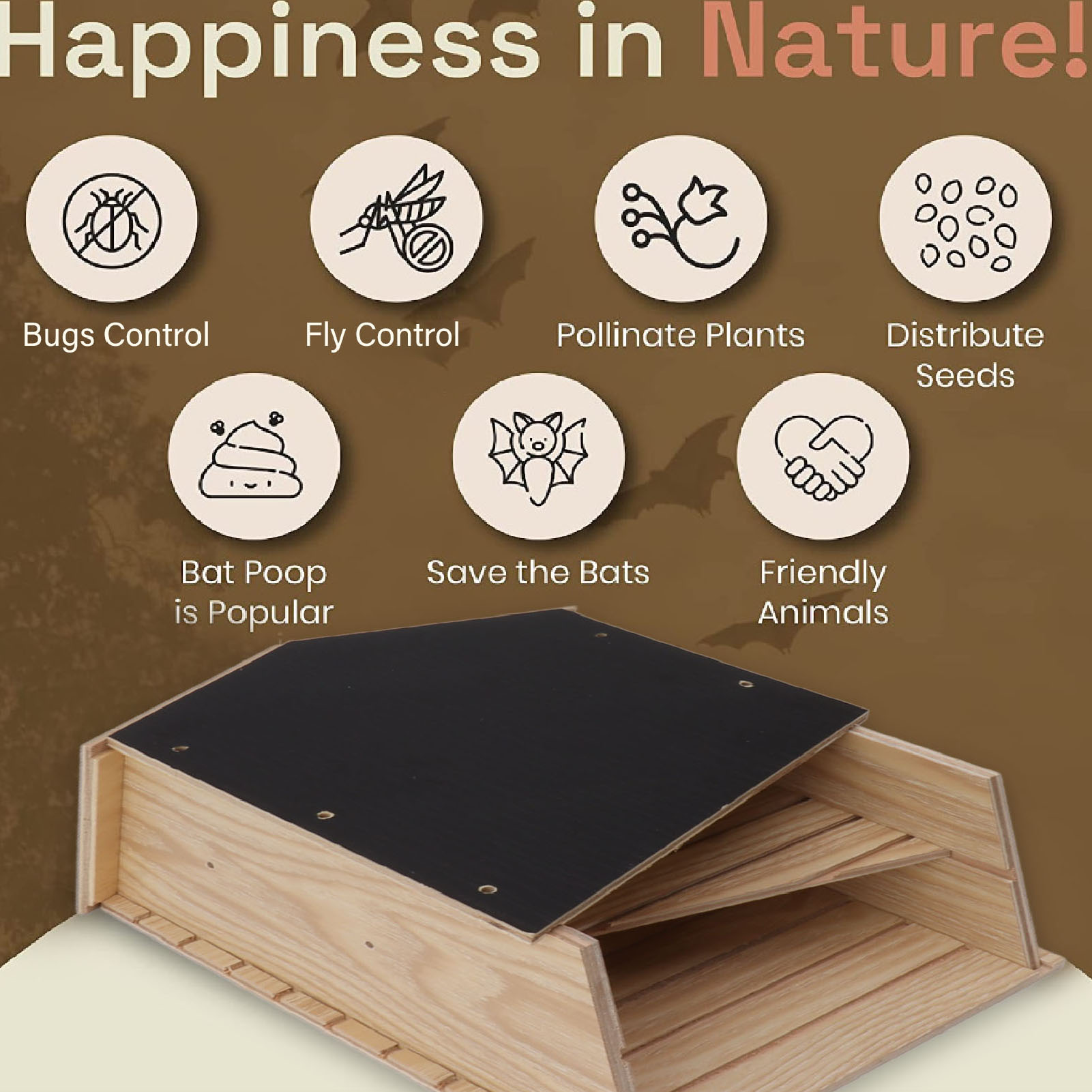 2. Дизайн двойной камеры: этот дом летучих мышей предлагает достаточно места для окуня для всей колонии, с канавками внутри, подходит для сада на улице, внутреннем дворике, дворе и т. Д.