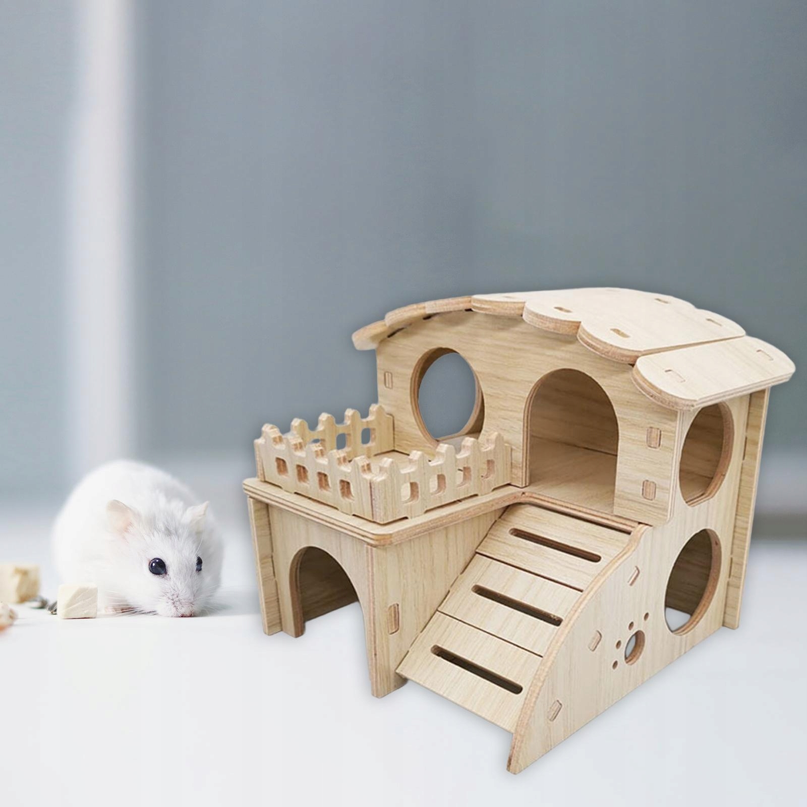 [Прочный материал] : Жилище для хомяков изготовлено из дерева с гладкими закругленными краями, без заусенцев, прочное и долговечное.