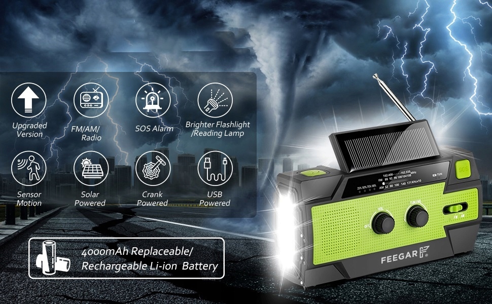 - Аварийная радиостанция Feegar OZE 2 PRO оснащена аварийным радиоприемником. встроенный аккумулятор емкостью 4000 мАч, который также можно заряжать с помощью солнечной панели и динамо-машины. Это идеальный вариант для укромных и тихих мест, где поблизости нет розетки. Кроме того, их можно питать от радиоприемника с помощью сменных батареек 18650 или через USB-кабель, входящий в комплект.