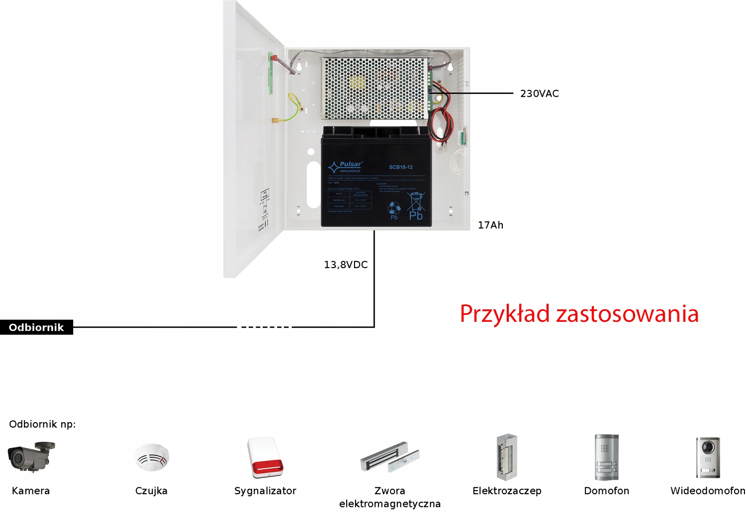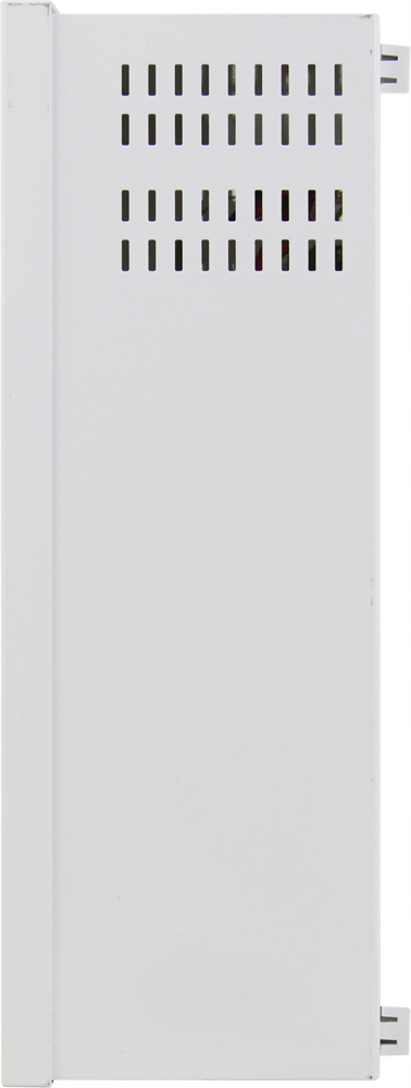 В случае пропадания сетевого напряжения устройство немедленно переключается на питание от аккумулятора. Блок питания выполнен на основе импульсного модуля питания, обладает высокой энергоэффективностью и помещен в металлический корпус (цвет RAL 9003) с местом для аккумулятора 18Ач/12В. Корпус оснащен микровыключателем, сигнализирующим об открытии дверцы (спереди).