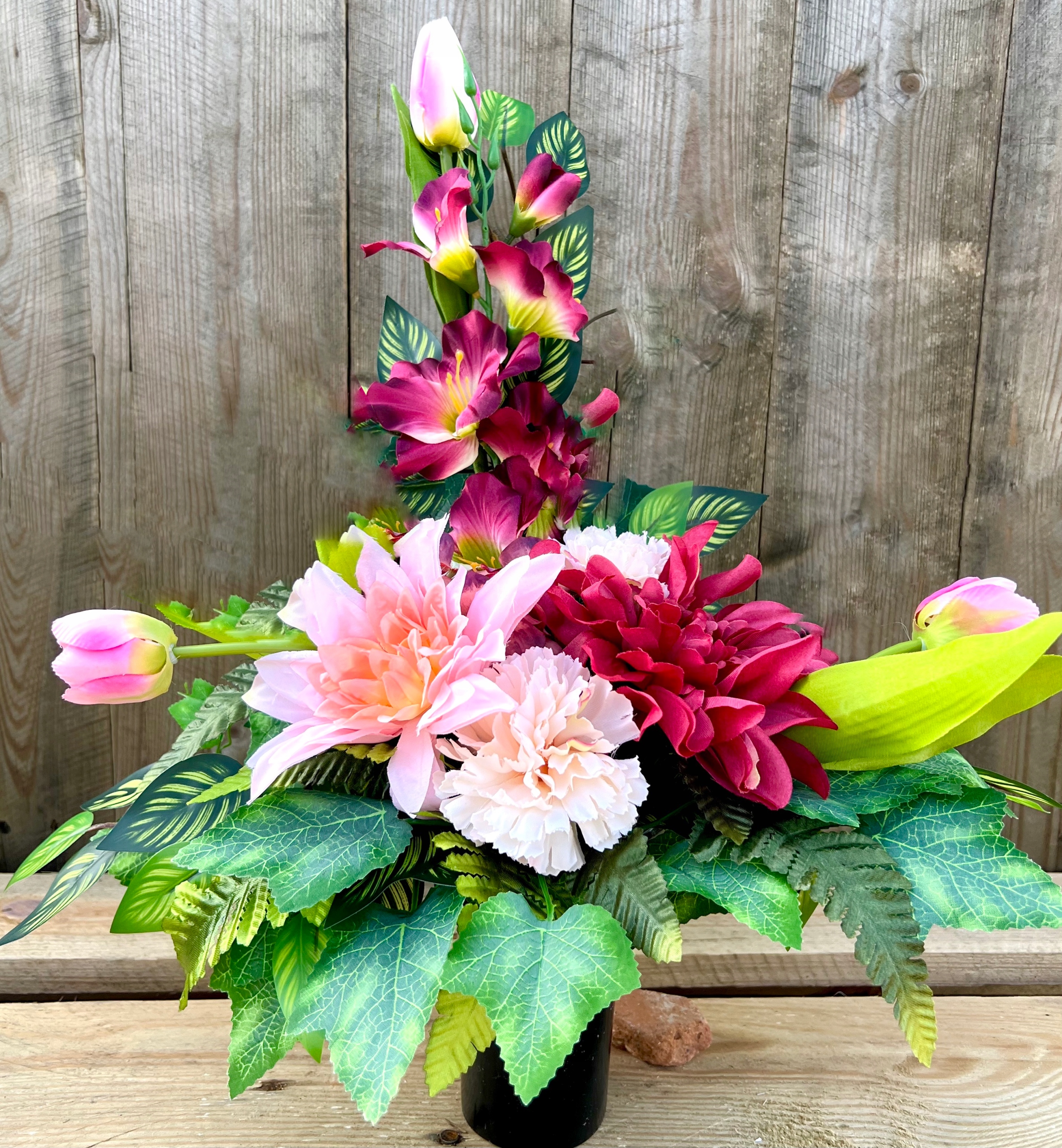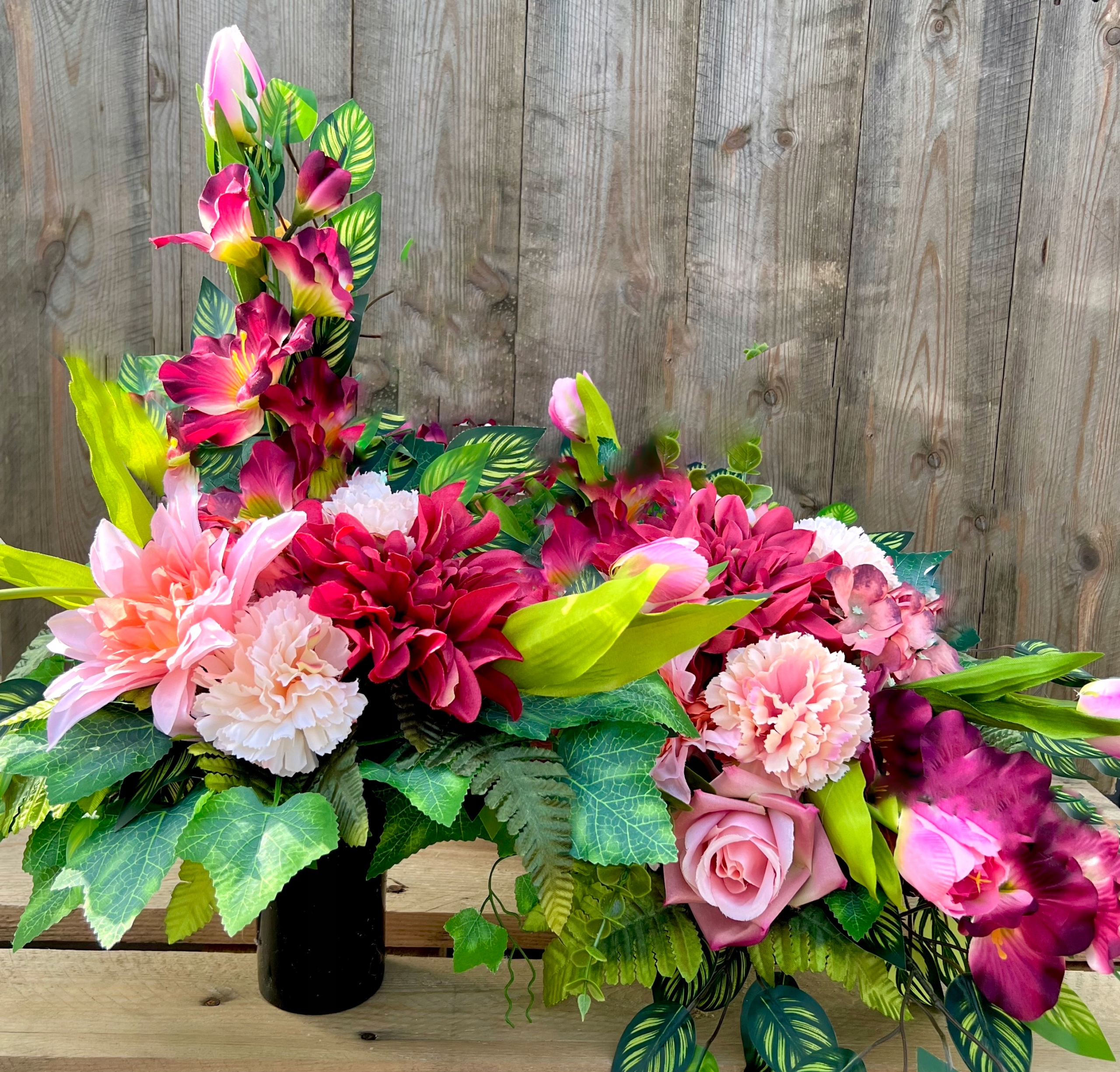 Букет + Букет Квіткова Композиція зі штучних квітів для пам'ятника на цвинтарі