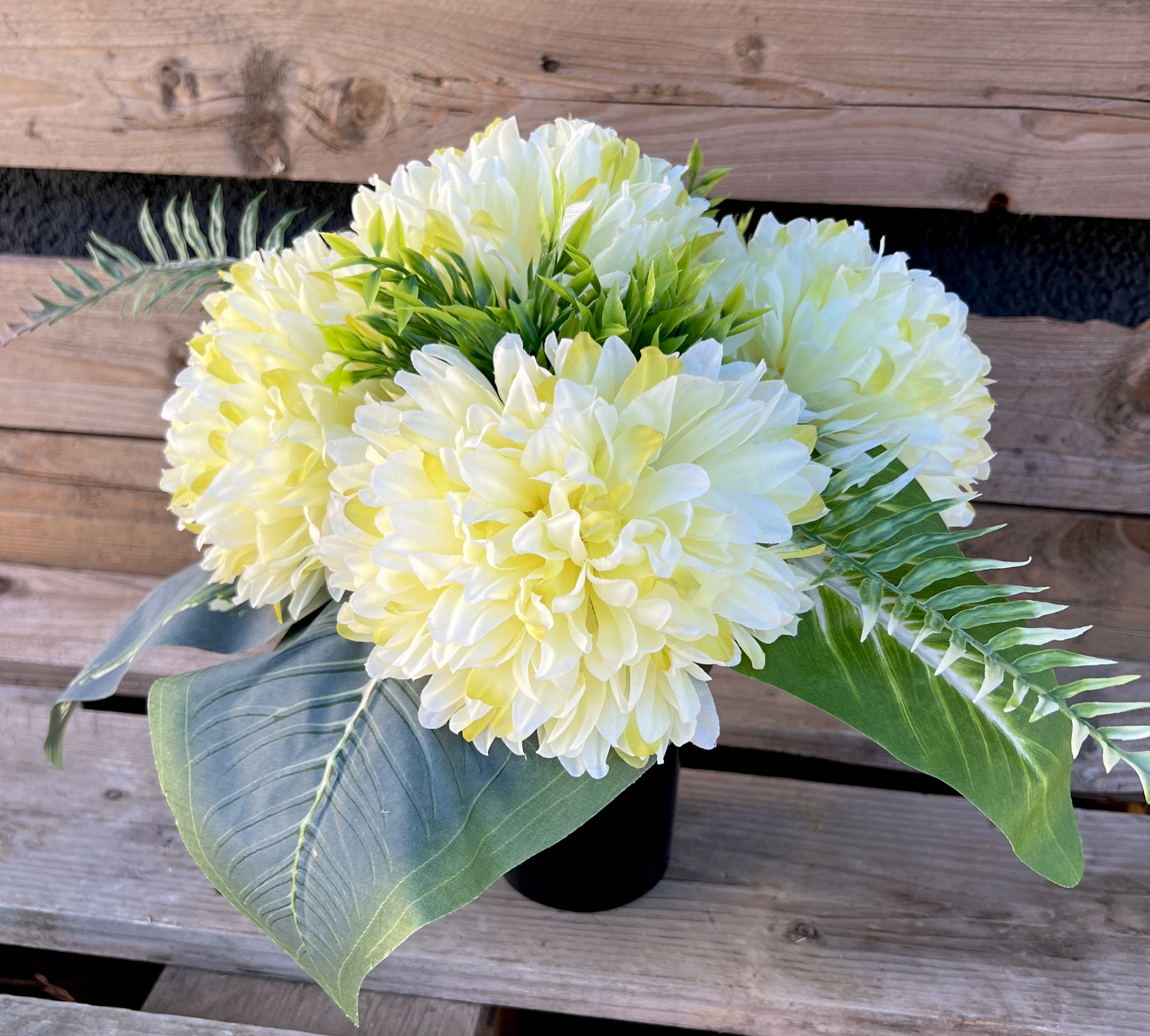 В состав букета и букета входит набор искусственных хризантем нескольких цветов.