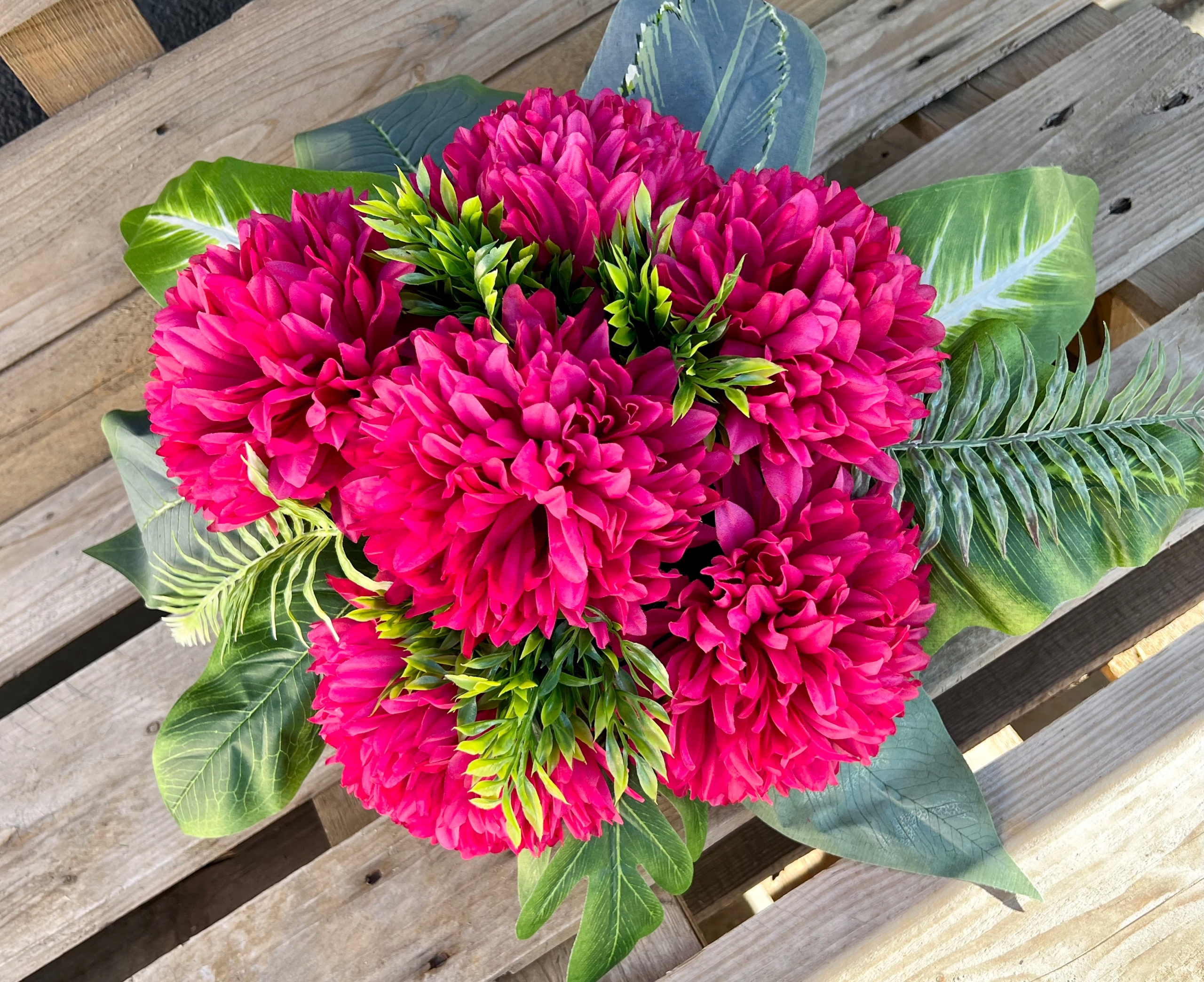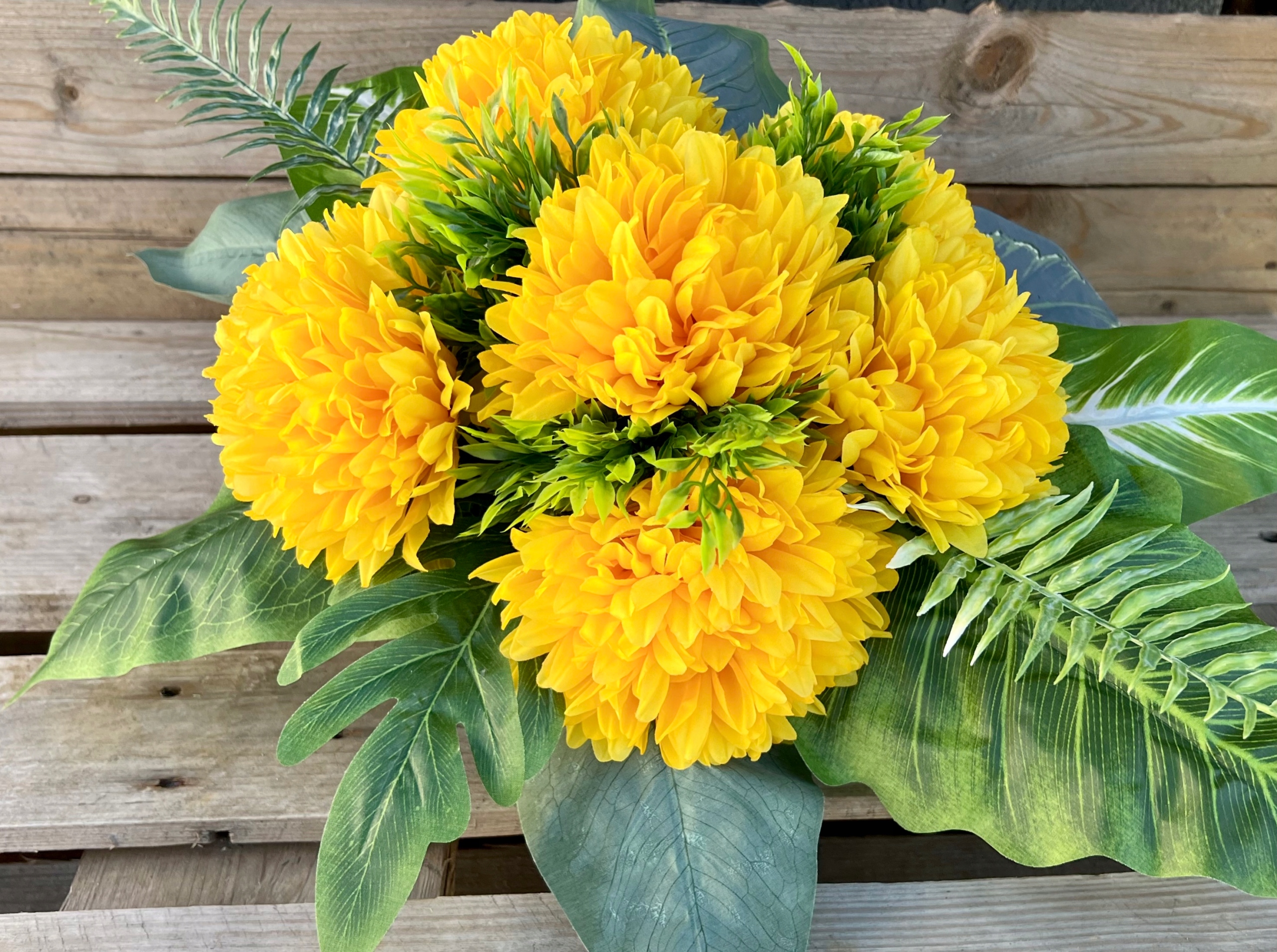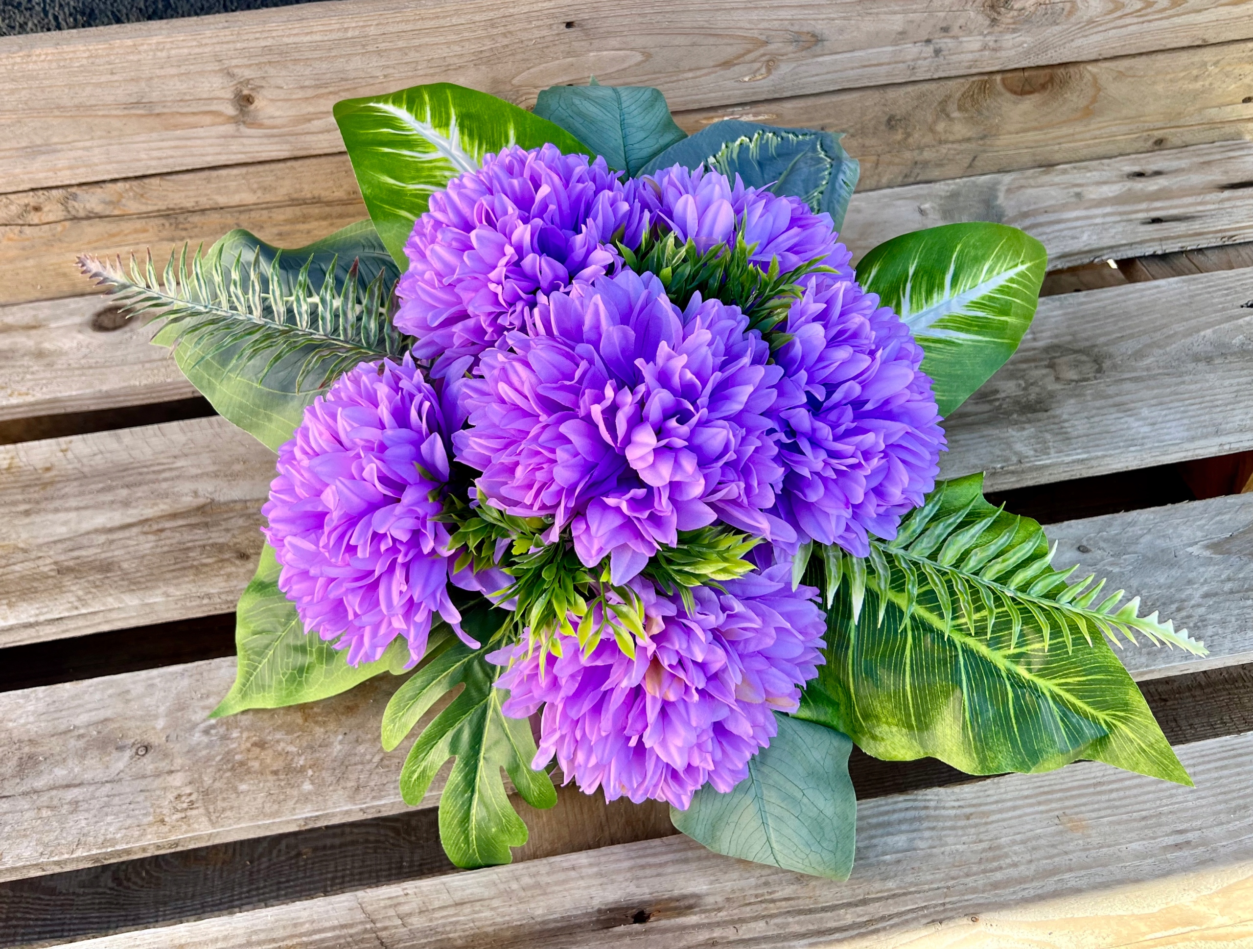 В состав букета и букета входит набор искусственных хризантем нескольких цветов.